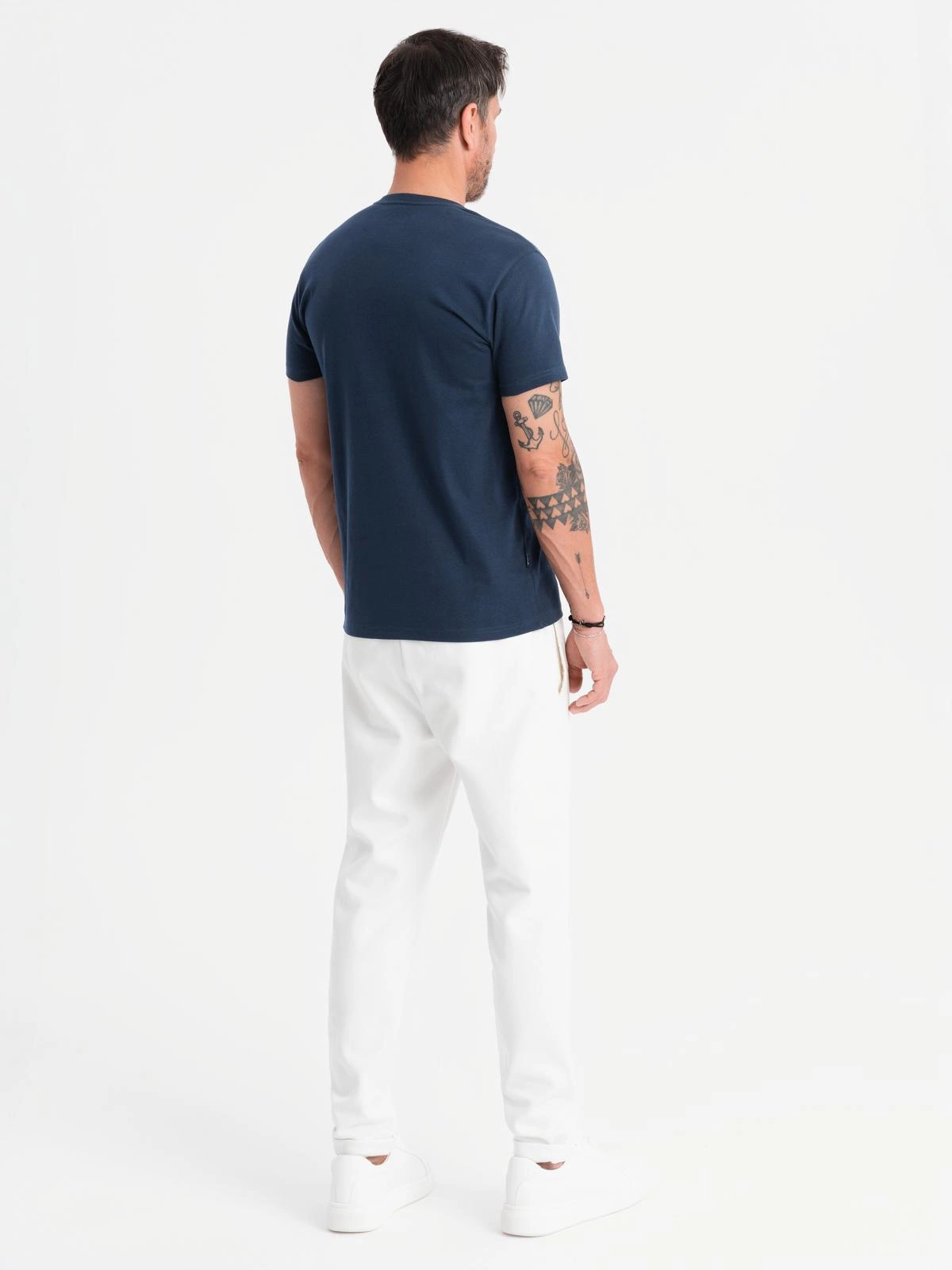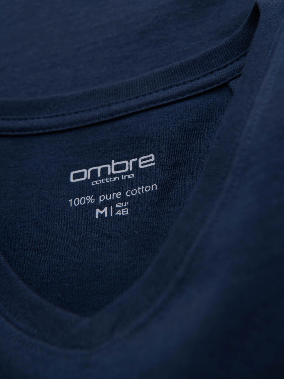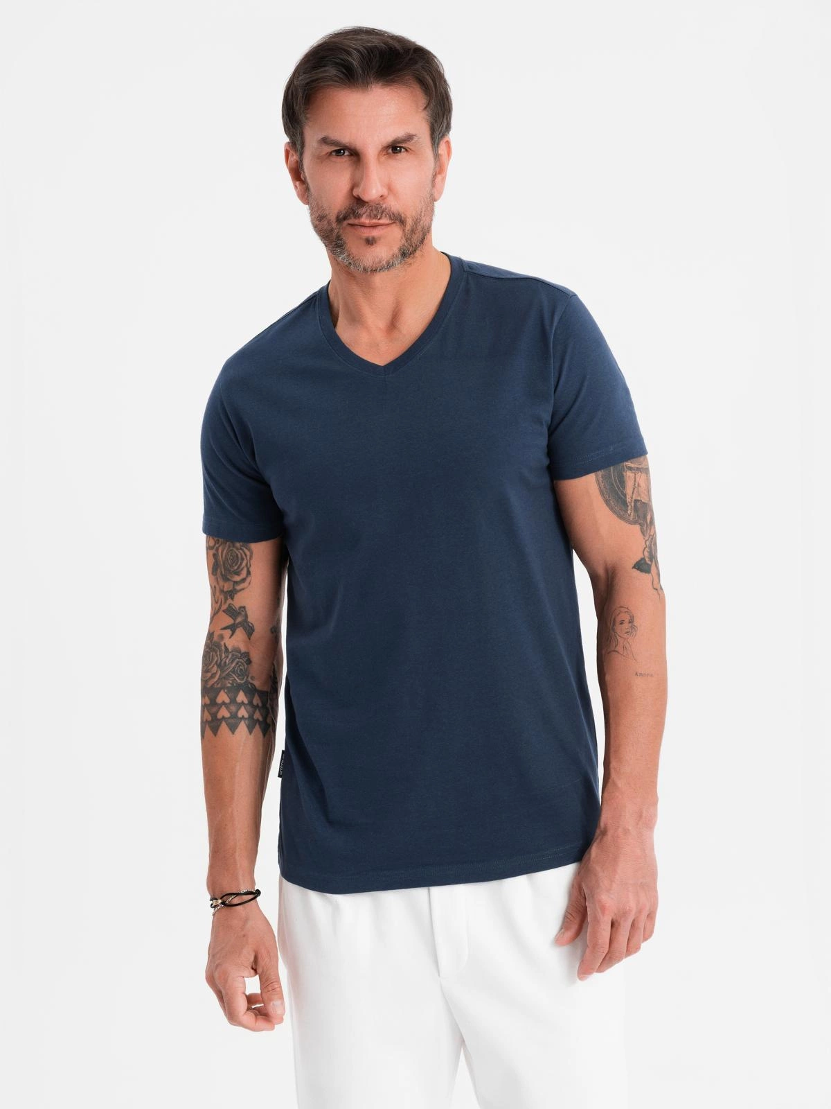 Pánské klasické bavlněné tričko BASIC s výstřihem do V - tmavě modré V2 OM-TSBS-0237