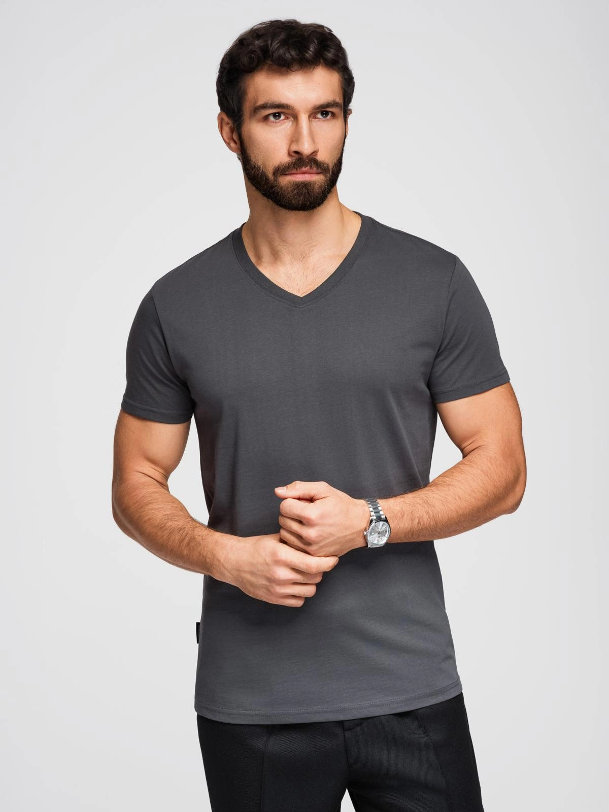 Pánské klasické bavlněné tričko BASIC s výstřihem do V - grafitová V3 OM-TSBS-0237