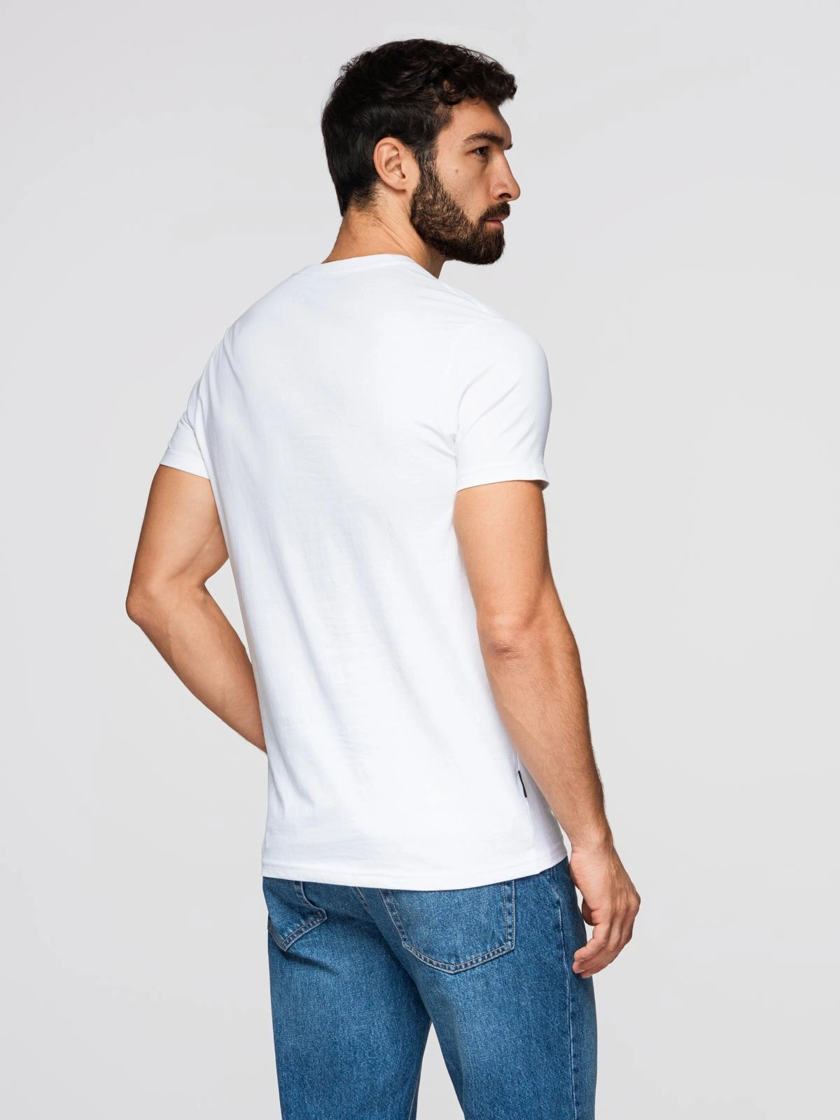Pánské klasické bavlněné tričko BASIC s výstřihem - bílé V4 OM-TSBS-0237