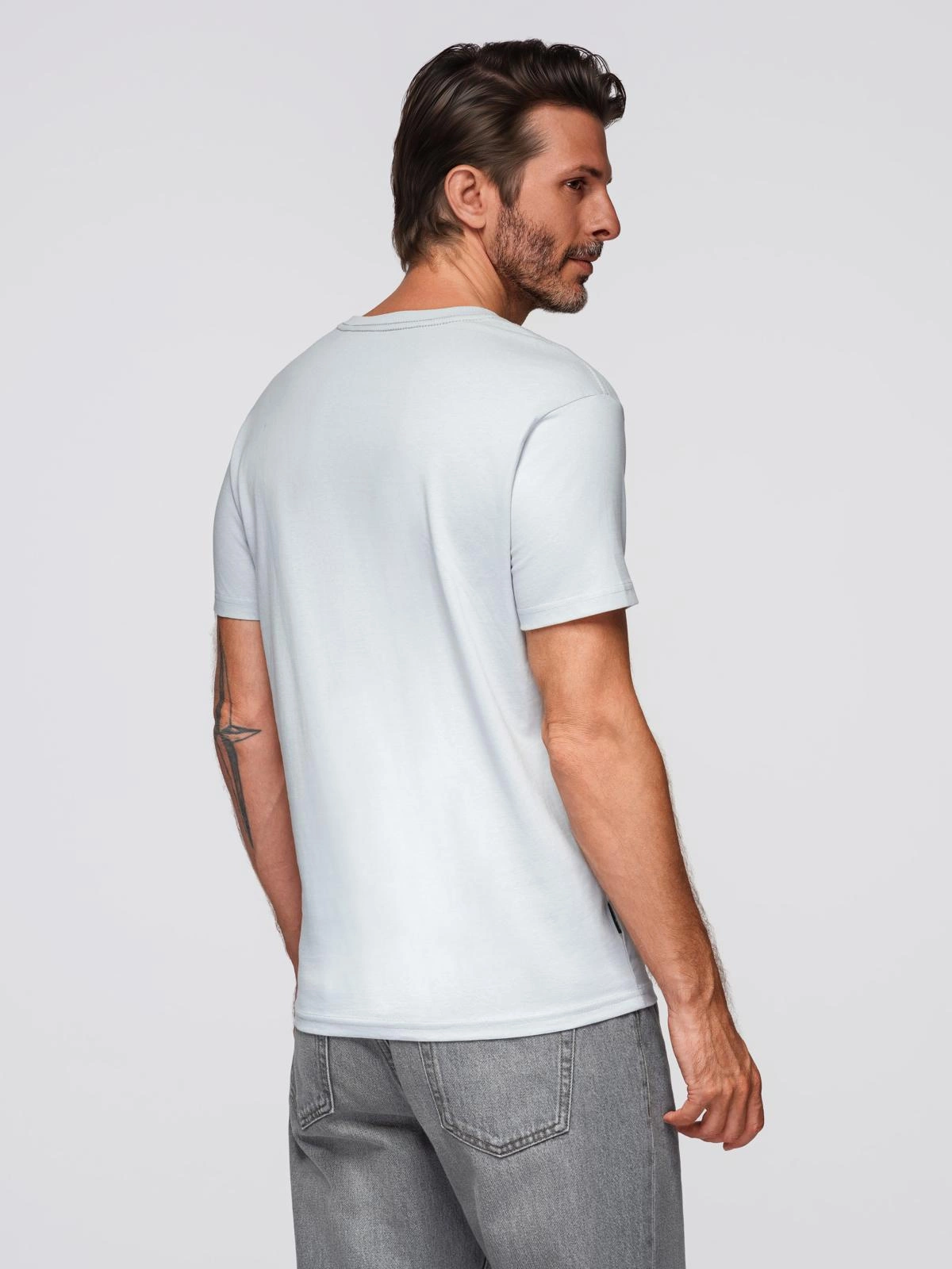 Pánské klasické bavlněné tričko BASIC s výstřihem - světle šedé V23 OM-TSBS-0237