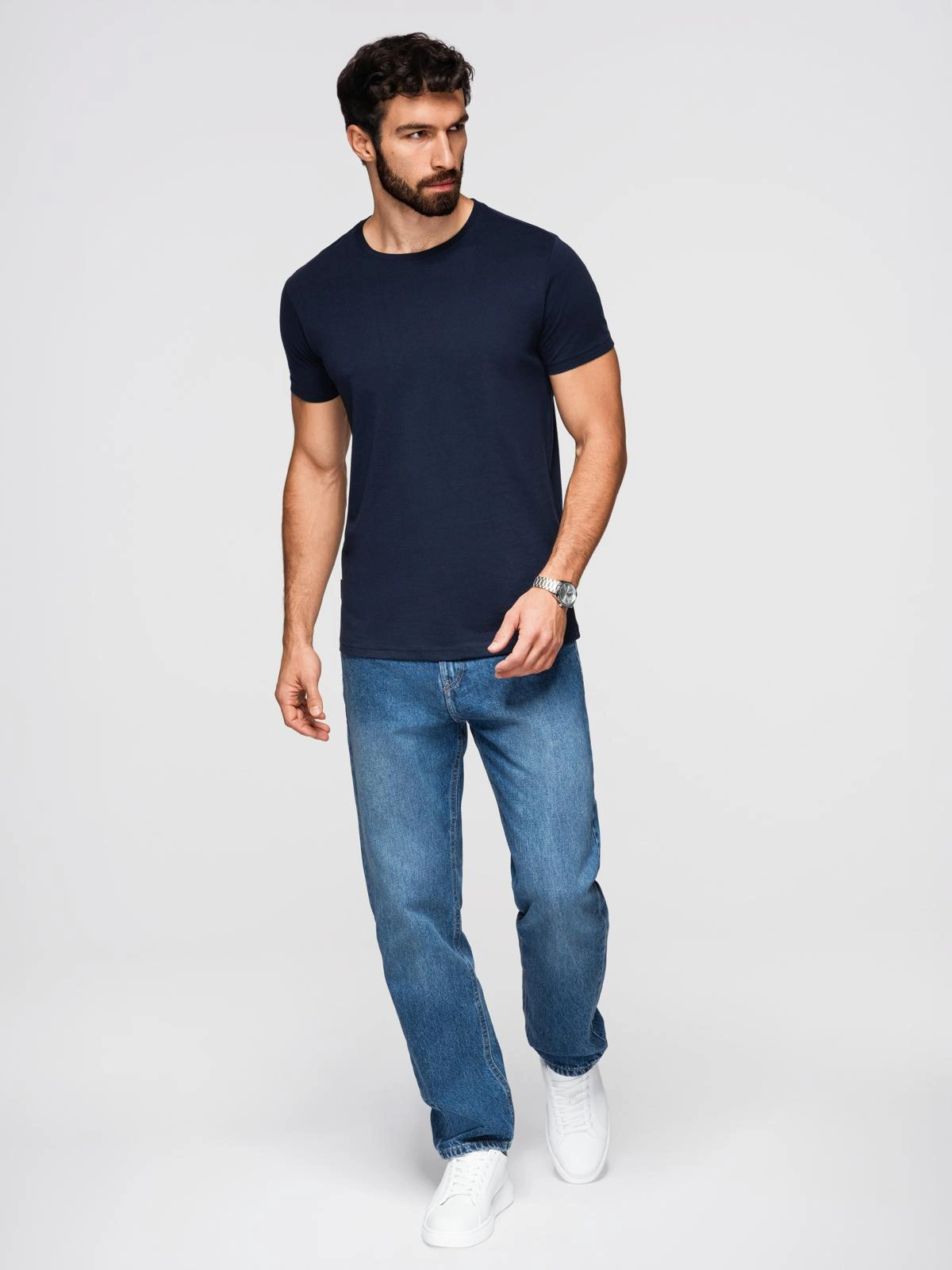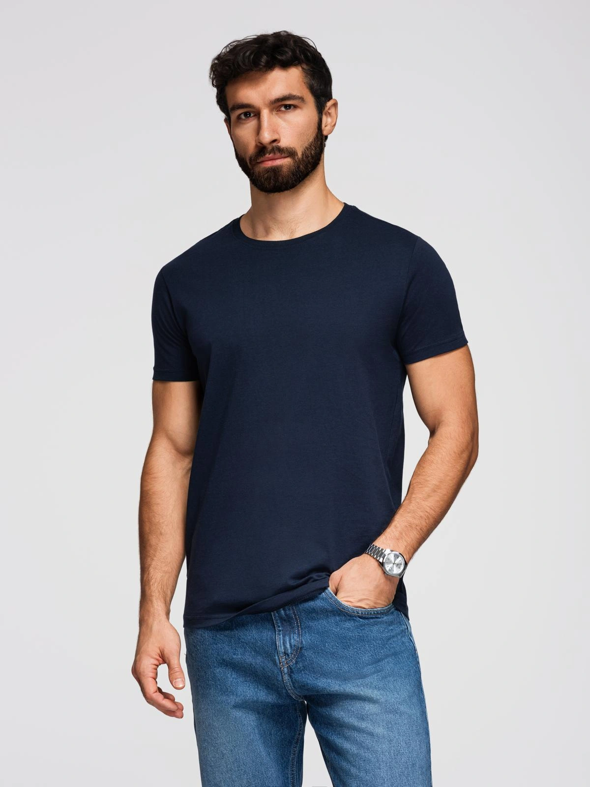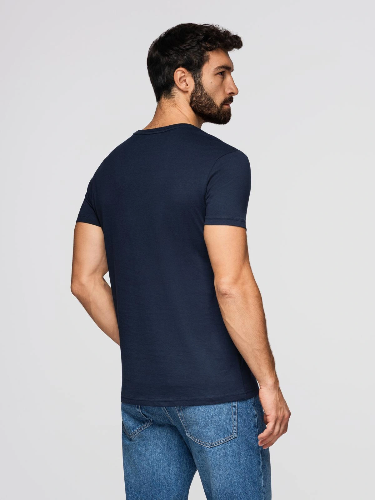 Pánské klasické bavlněné tričko BASIC - tmavě modré V2 OM-TSBS-0236