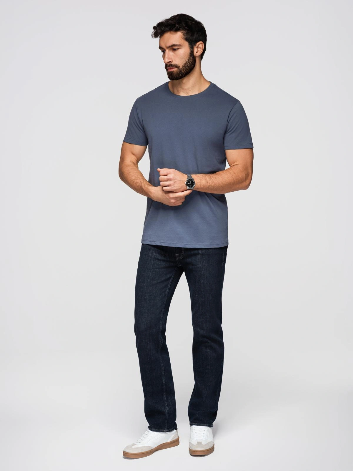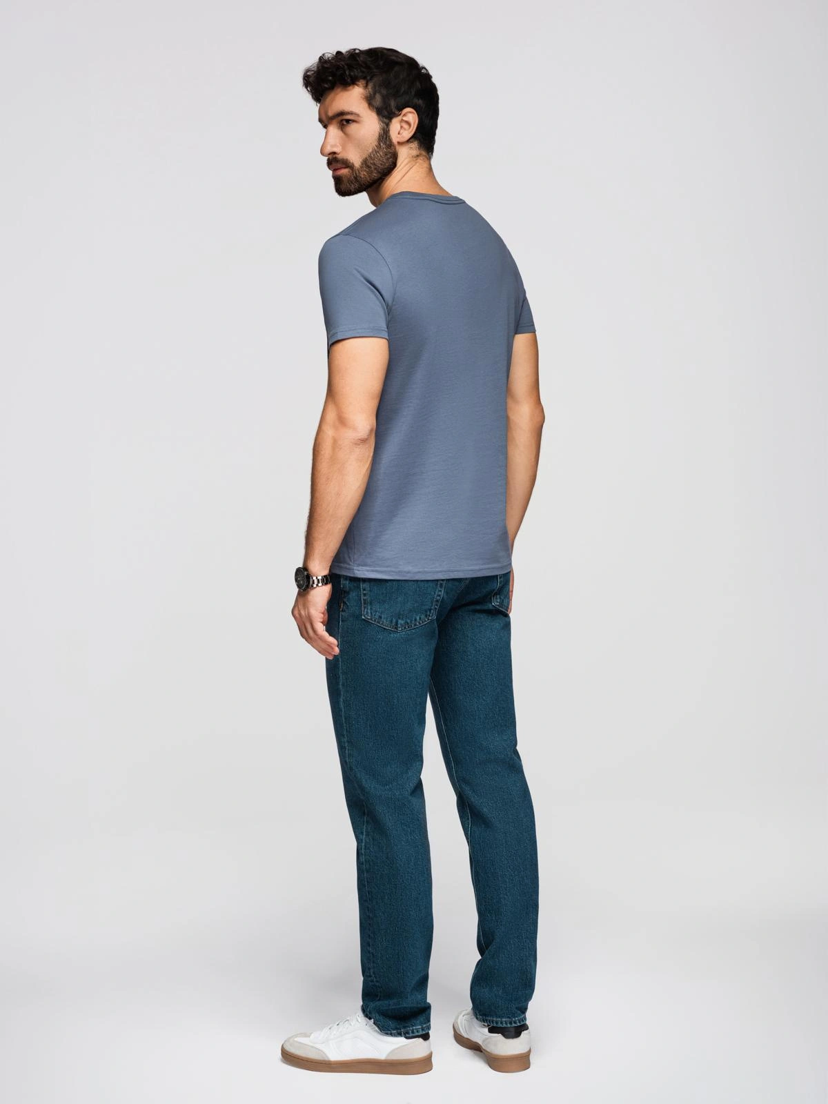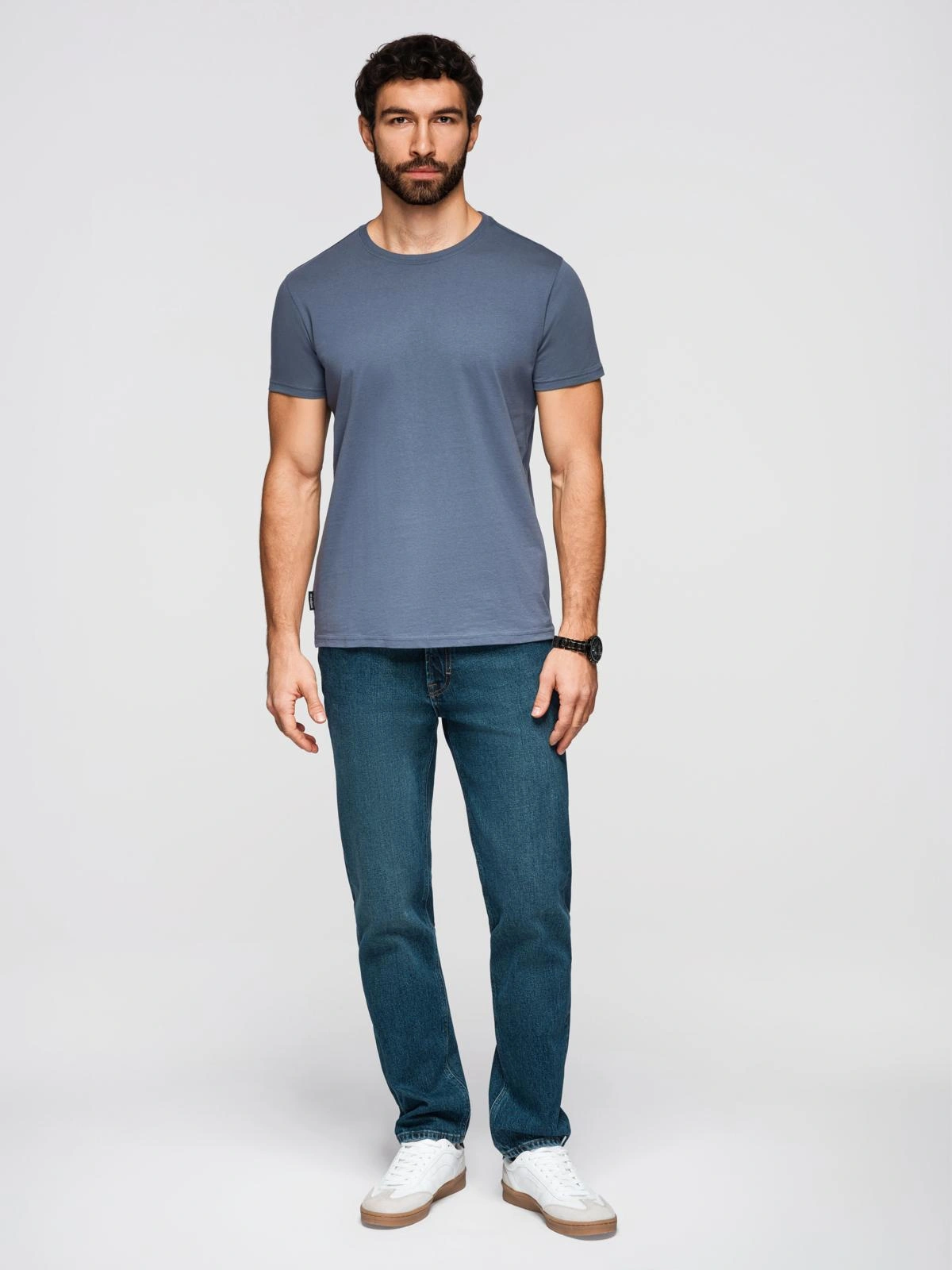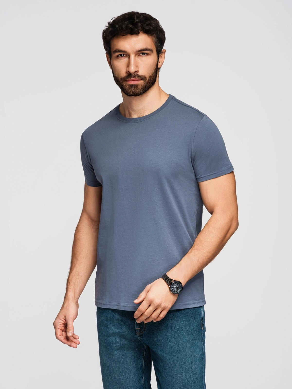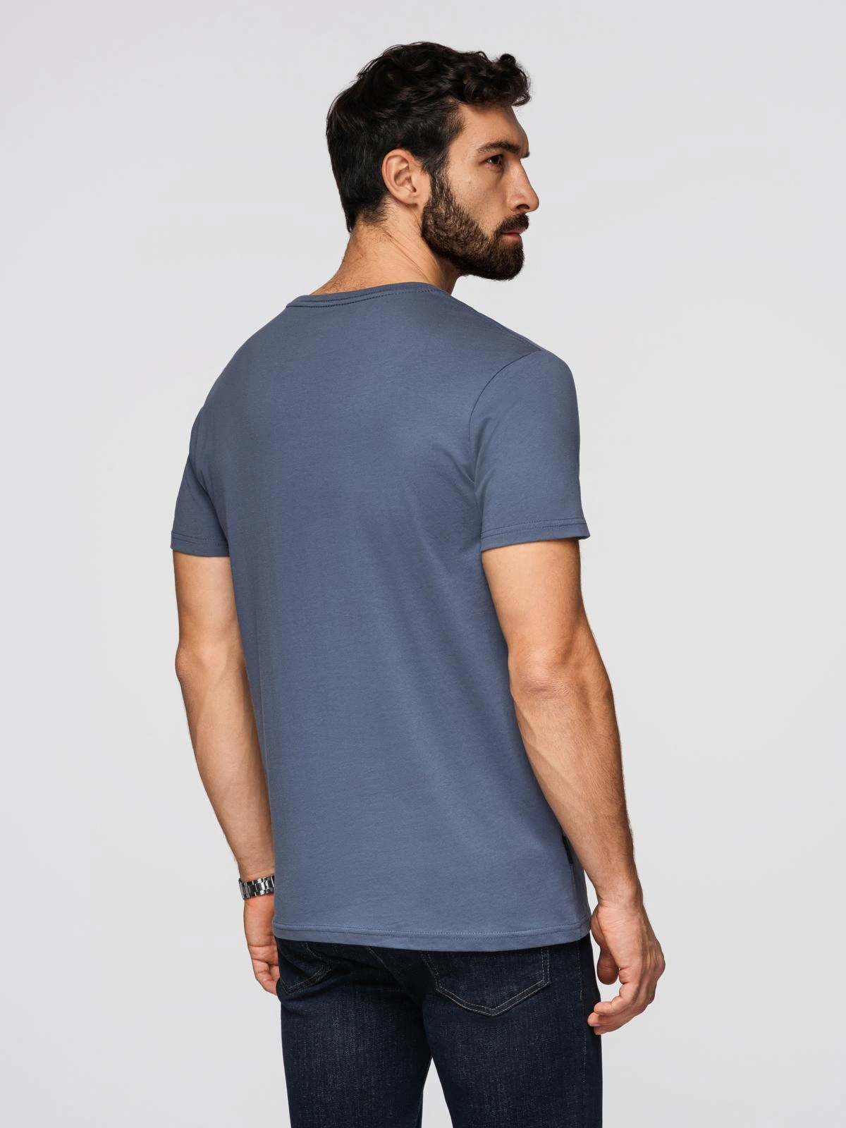 Pánské klasické bavlněné tričko BASIC - modrá džínovina V7 OM-TSBS-0236