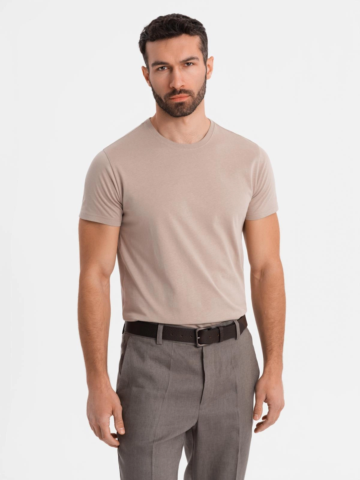 Pánské klasické bavlněné tričko BASIC - pískové V11 OM-TSBS-0236