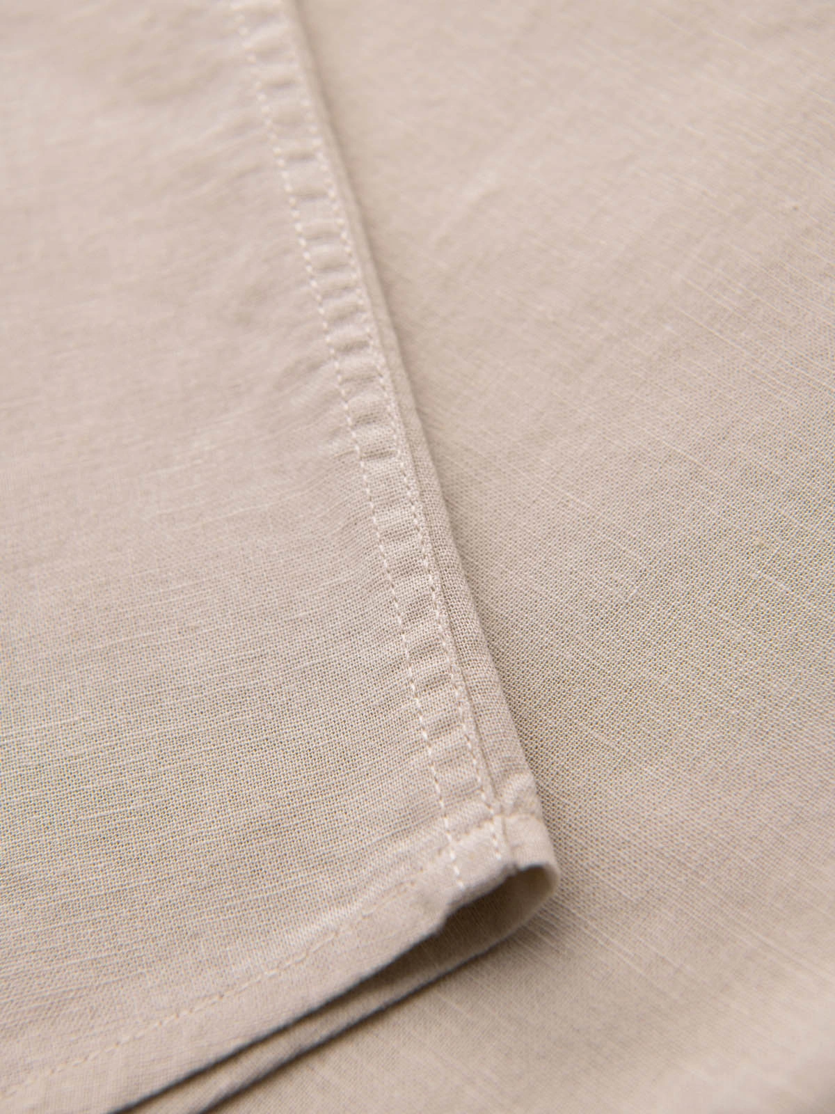 Pánská košile z bavlny a lnu s krátkým rukávem a kapsou - béžová V4 OM-SHSS-0167