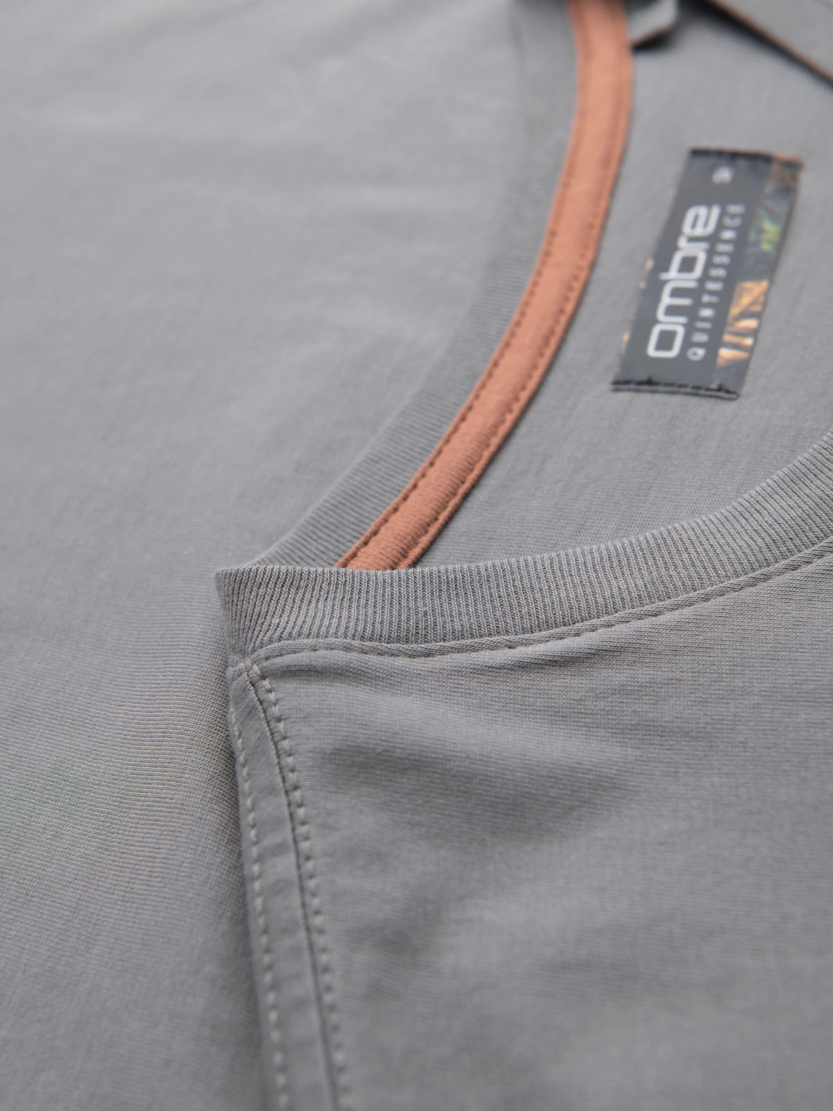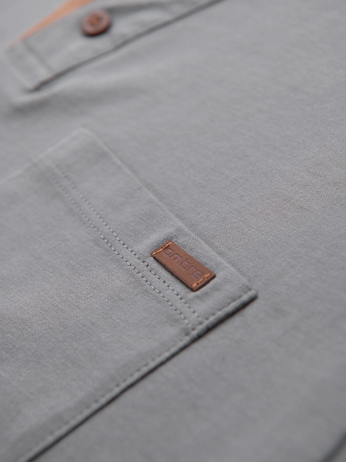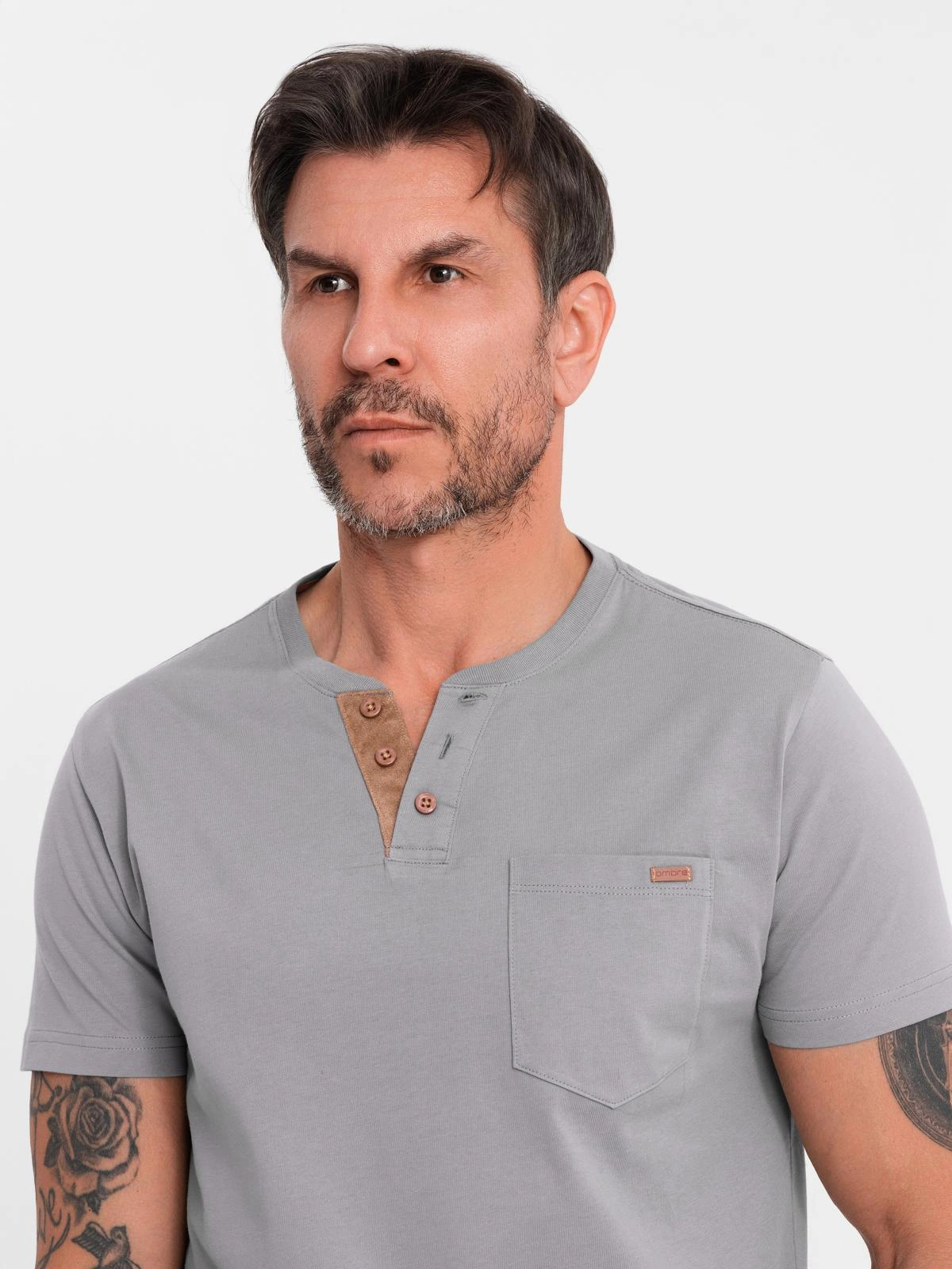 Pánské tričko s knoflíkovým výstřihem a semišovým lemem - šedé V3 OM-TSCT-0206