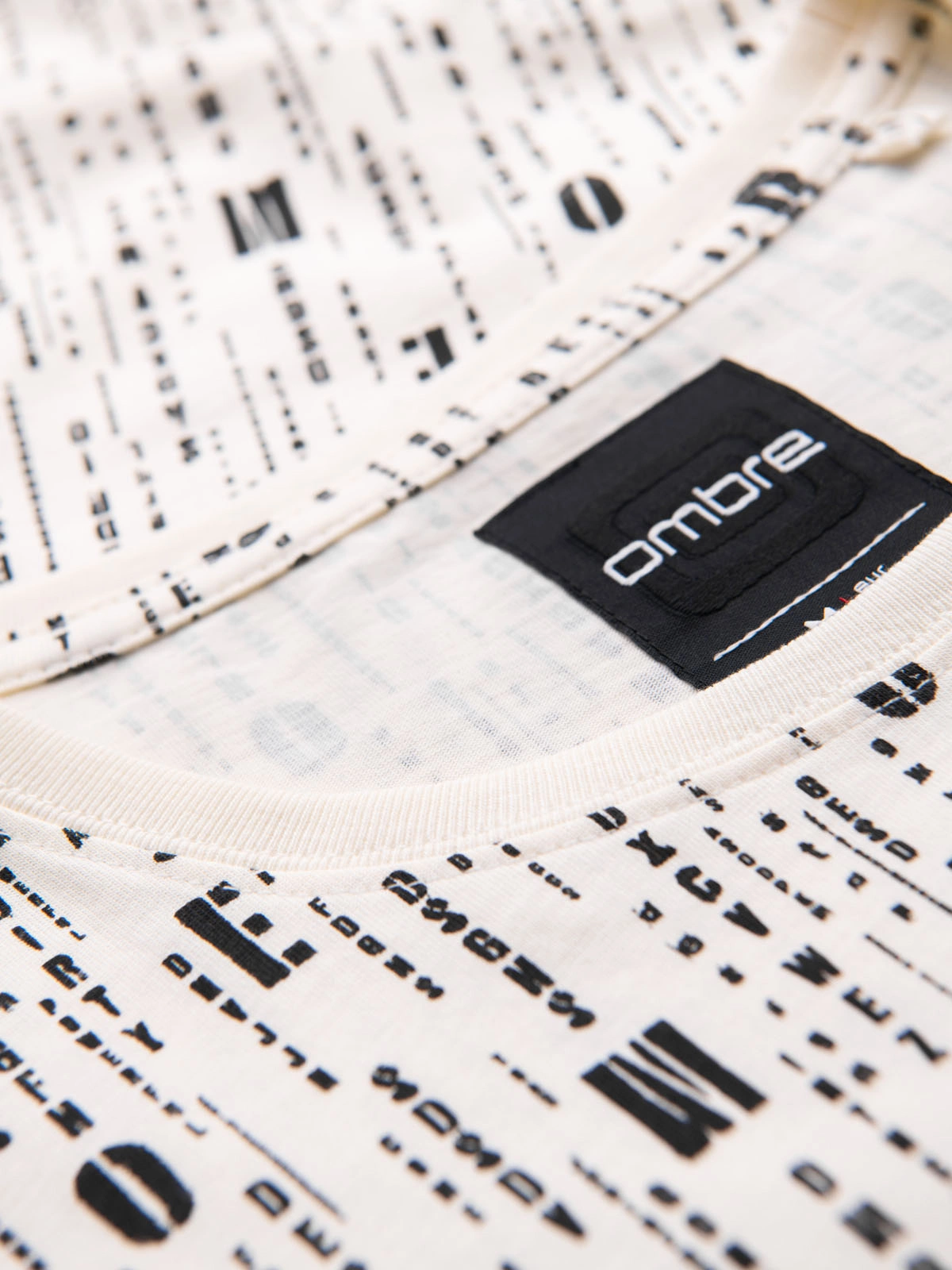 Bavlněné tričko s potiskem a kulatým výstřihem - krémové V1 OM-TSFP-0225