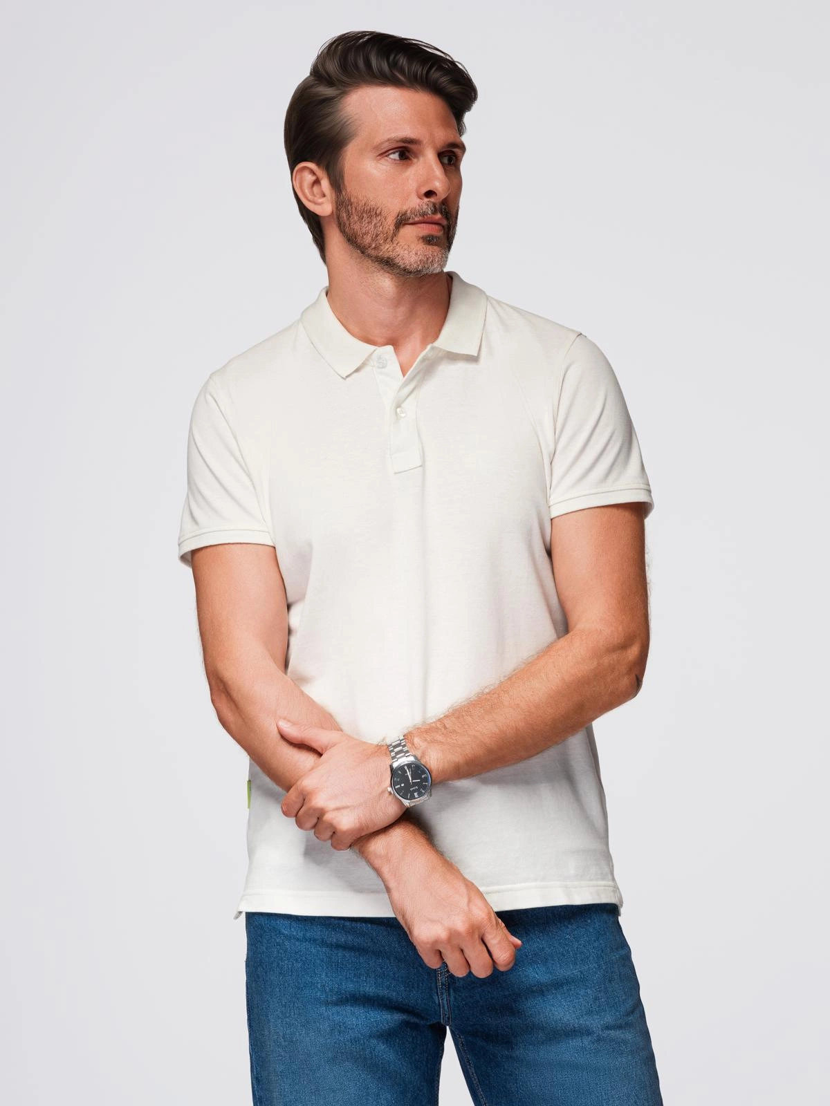 Bavlněná polokošile z piké úpletu - ecru V7 OM-POSS-0103