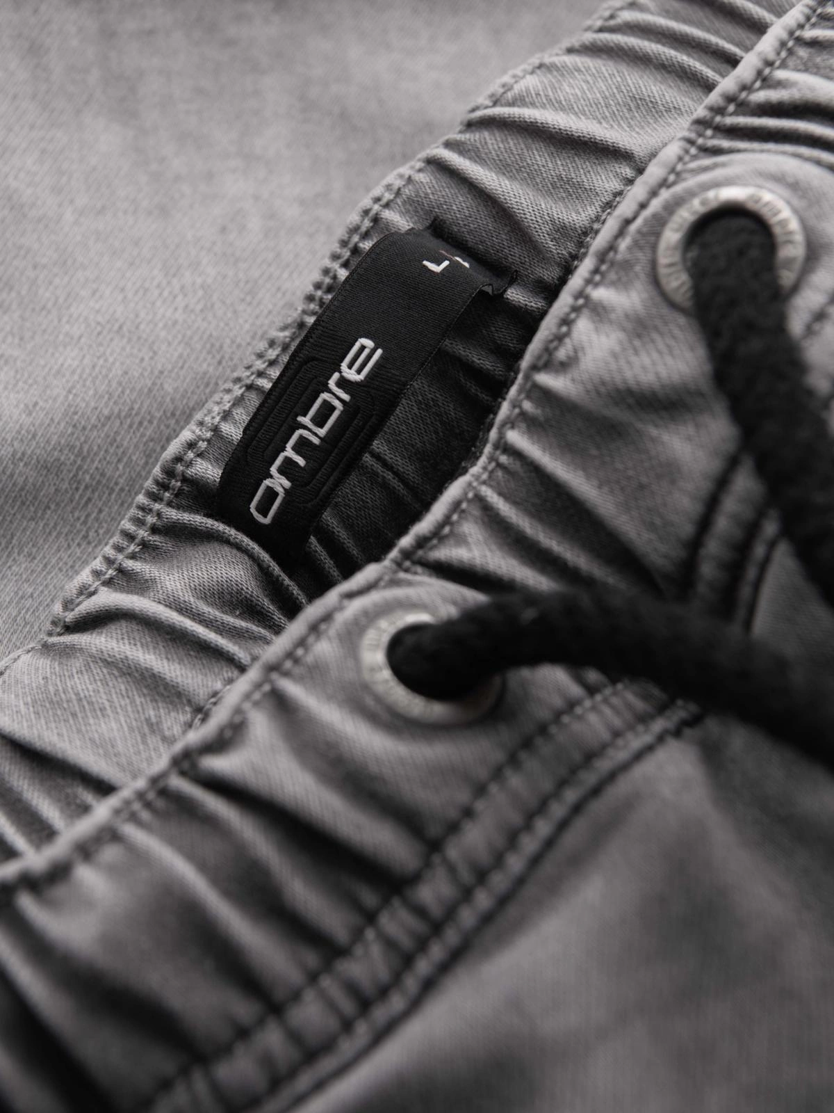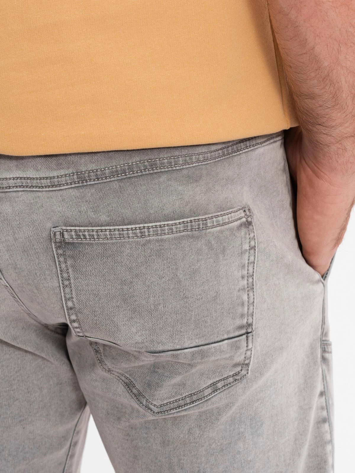 Pánské džínové kraťasy s ozdobným prošíváním - světle šedé V1 OM-SRDS-0135