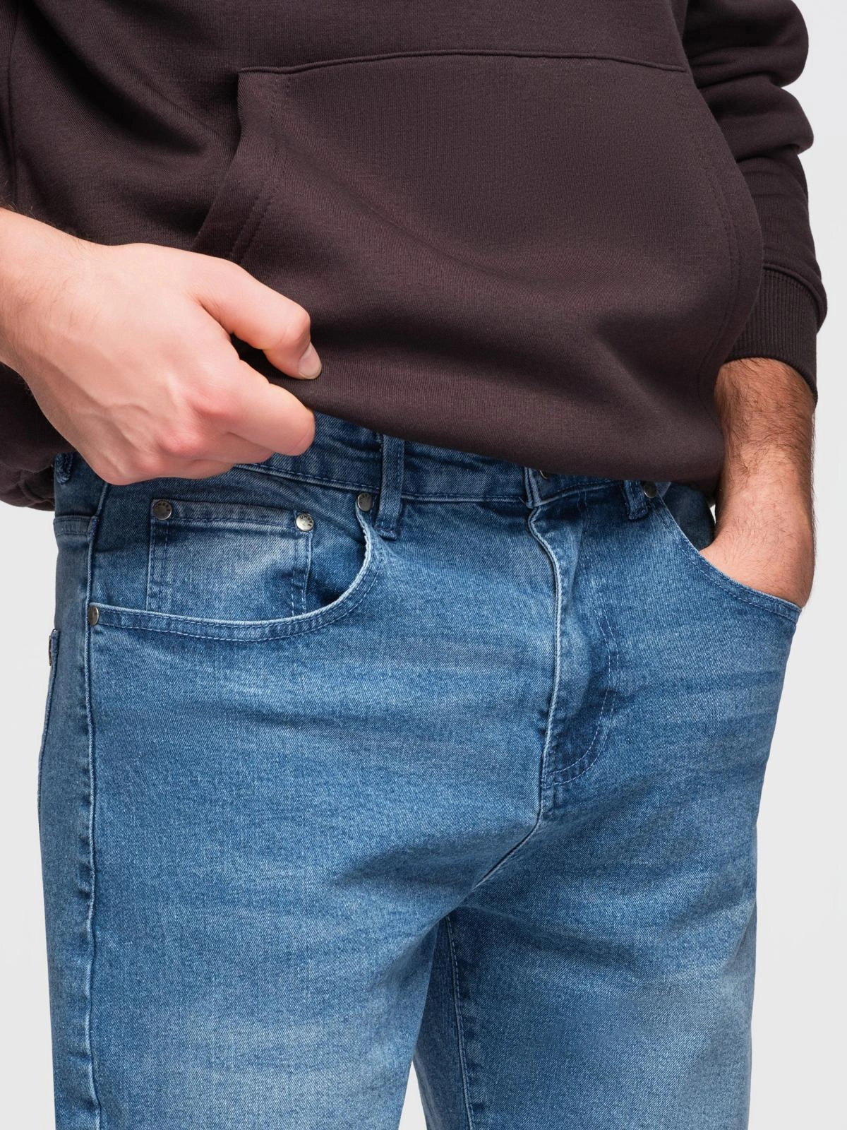 Pánské džínové šortky s ohrnutou nohavicí - modré V2 OM-SRDS-0164