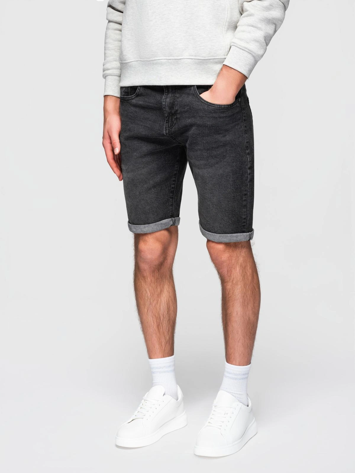 Pánské džínové šortky s ohrnutou nohavicí - černé V3 OM-SRDS-0164