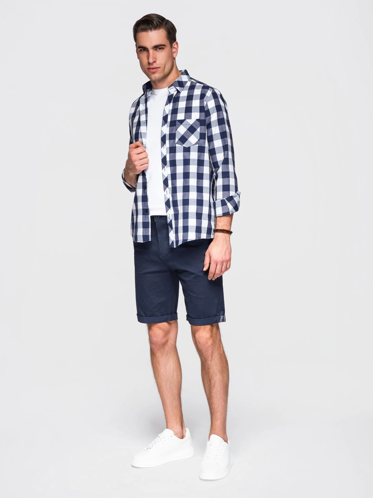 Pánské klasické chino šortky s ohrnutou nohavicí - tmavě modré V10 OM-SRCS-0197