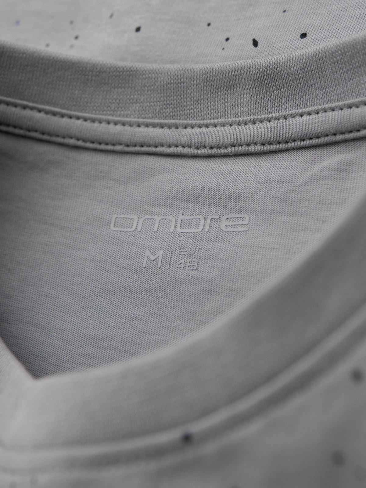 Pánské bavlněné tričko s potiskem a kulatým výstřihem - světle šedé V8 OM-TSFP-0186