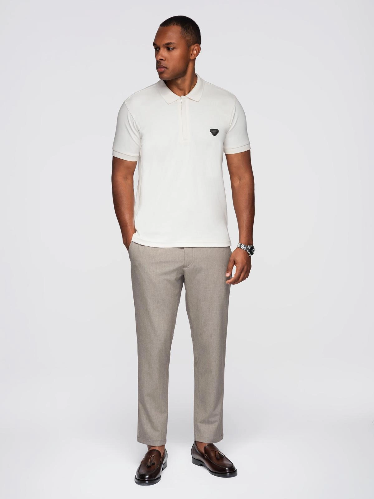 Pánská polokošile s výstřihem na zip - bílá V1 OM-POSS-0148