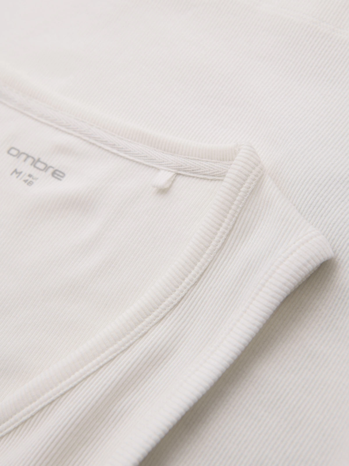 Pánské tričko bez ramínek má minimalistický design ideální na léto nebo na nošení pod dalšími vrstvami. Je vyrobeno z pružného žebrovaného úpletu a přiléhá těsně k tělu pro naprostou volnost pohybu. Jemné detaily, jako je tkaná etiketa na boku, zdůrazňují moderní charakter výrobku.