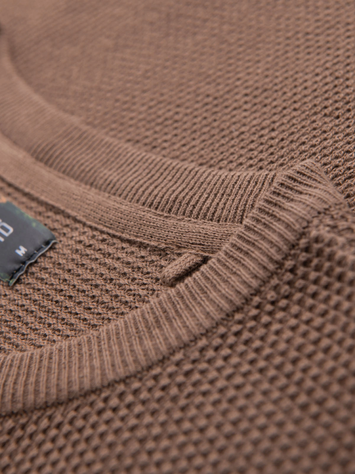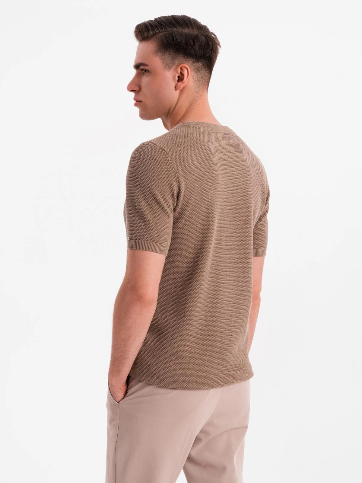 Pánská pletená košile s jemnou texturou - světle hnědá V2 OM-TSCT-0244