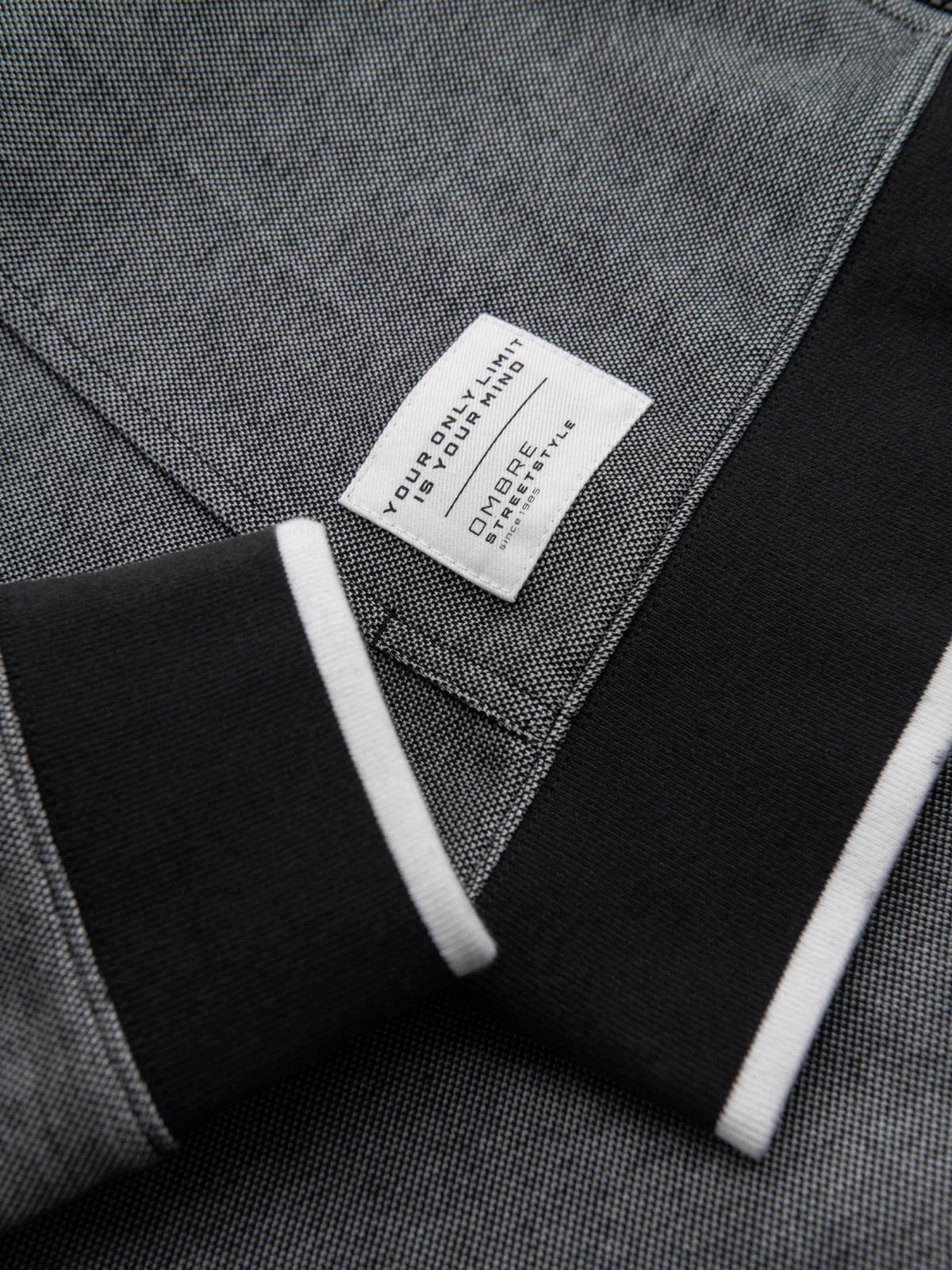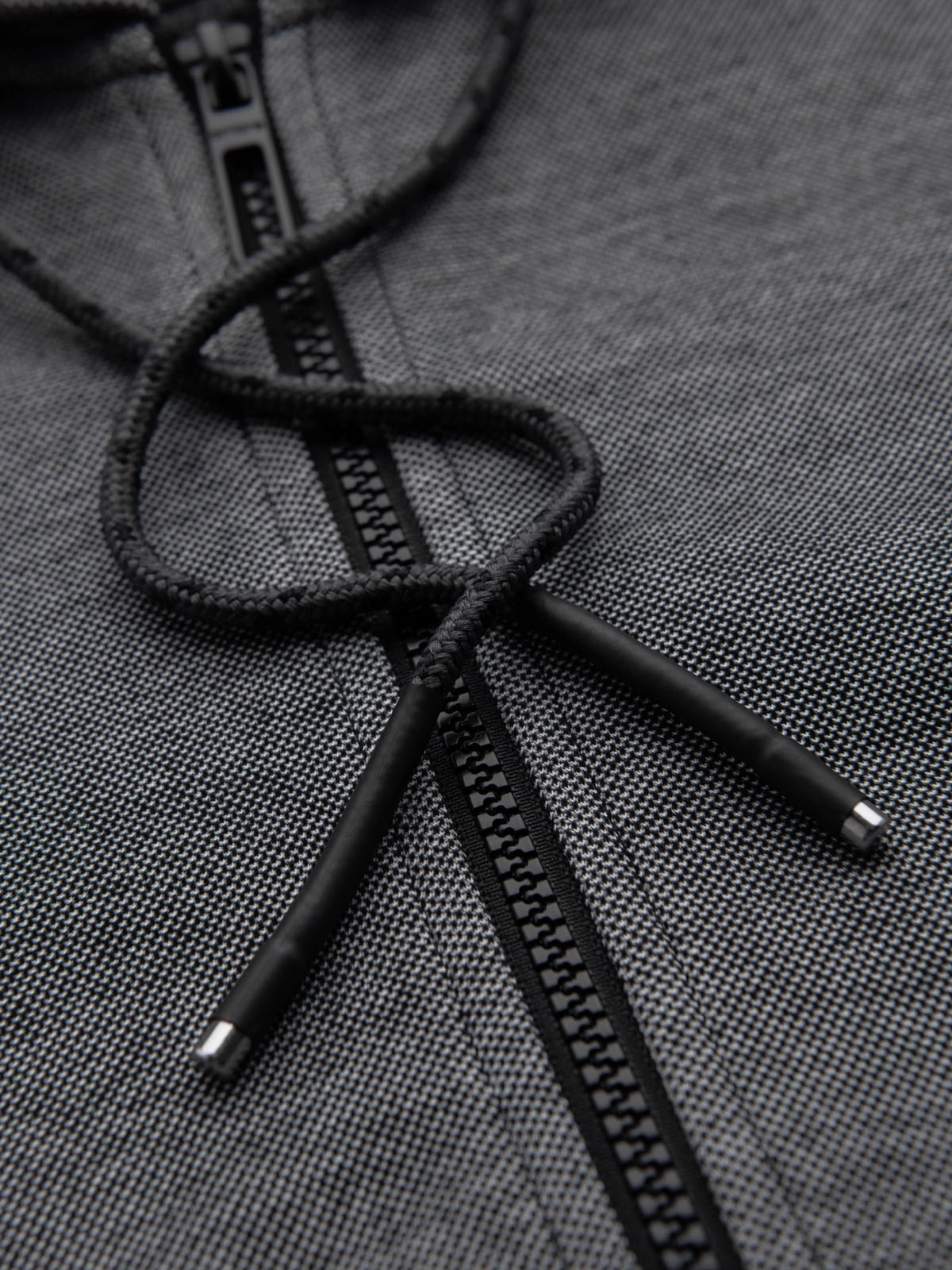 Mikina na zip běžného střihu z dvoubarevného piké úpletu pro pohodlný a módní každodenní vzhled. Nastavitelná kapuce a neobvykle tvarovaná kapsa dodávají sportovní nádech. Mikina je obohacena o jemné detaily, jako jsou očka s logem a konce šňůrek. Kontrastní žebrování dodává mikině charakter a styl.