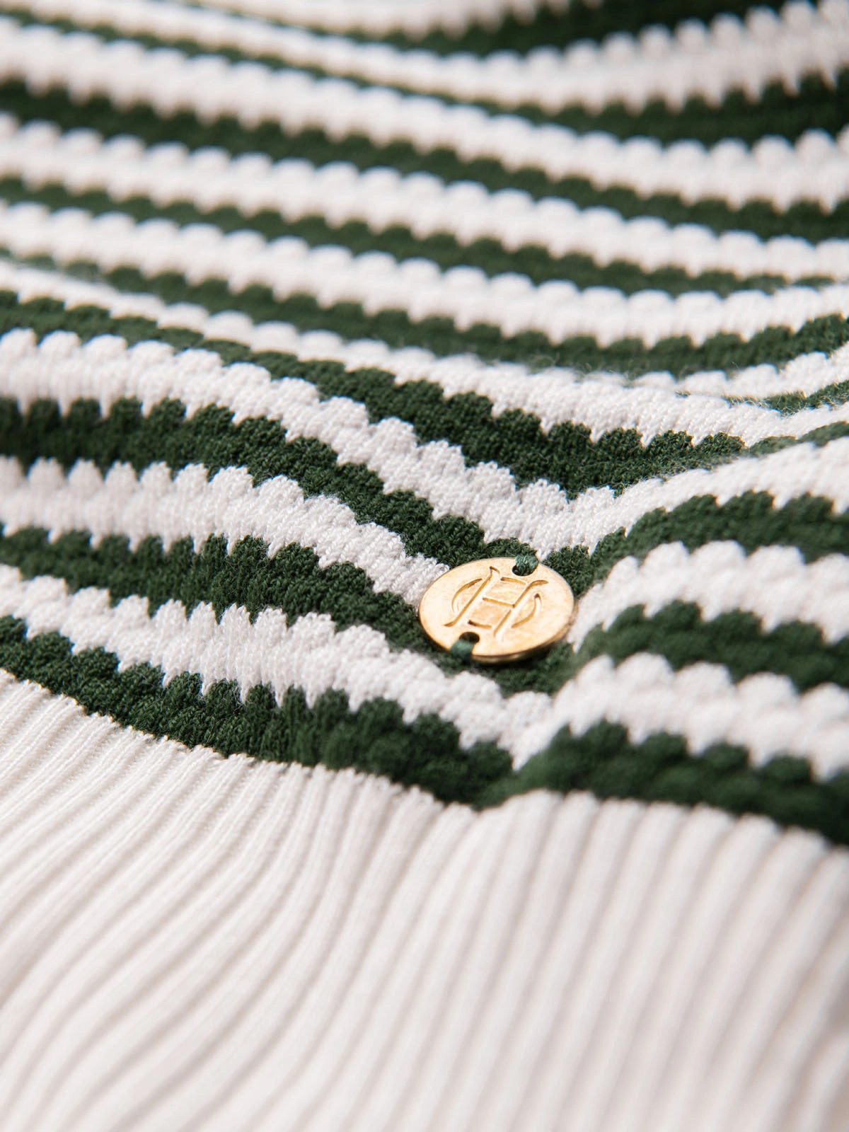 Pletené tričko, které definuje klasiku letního stylu. Výrazná pletenina a kontrastní pruhy v námořnickém duchu mu dodávají svěží a jedinečný výraz. Přiléhavý úzký střih poskytuje volnost pohybu a stylovou siluetu. Je ideální pro pánské slunečné dny - ať už pro městské stylizace, nebo procházky po pobřeží.