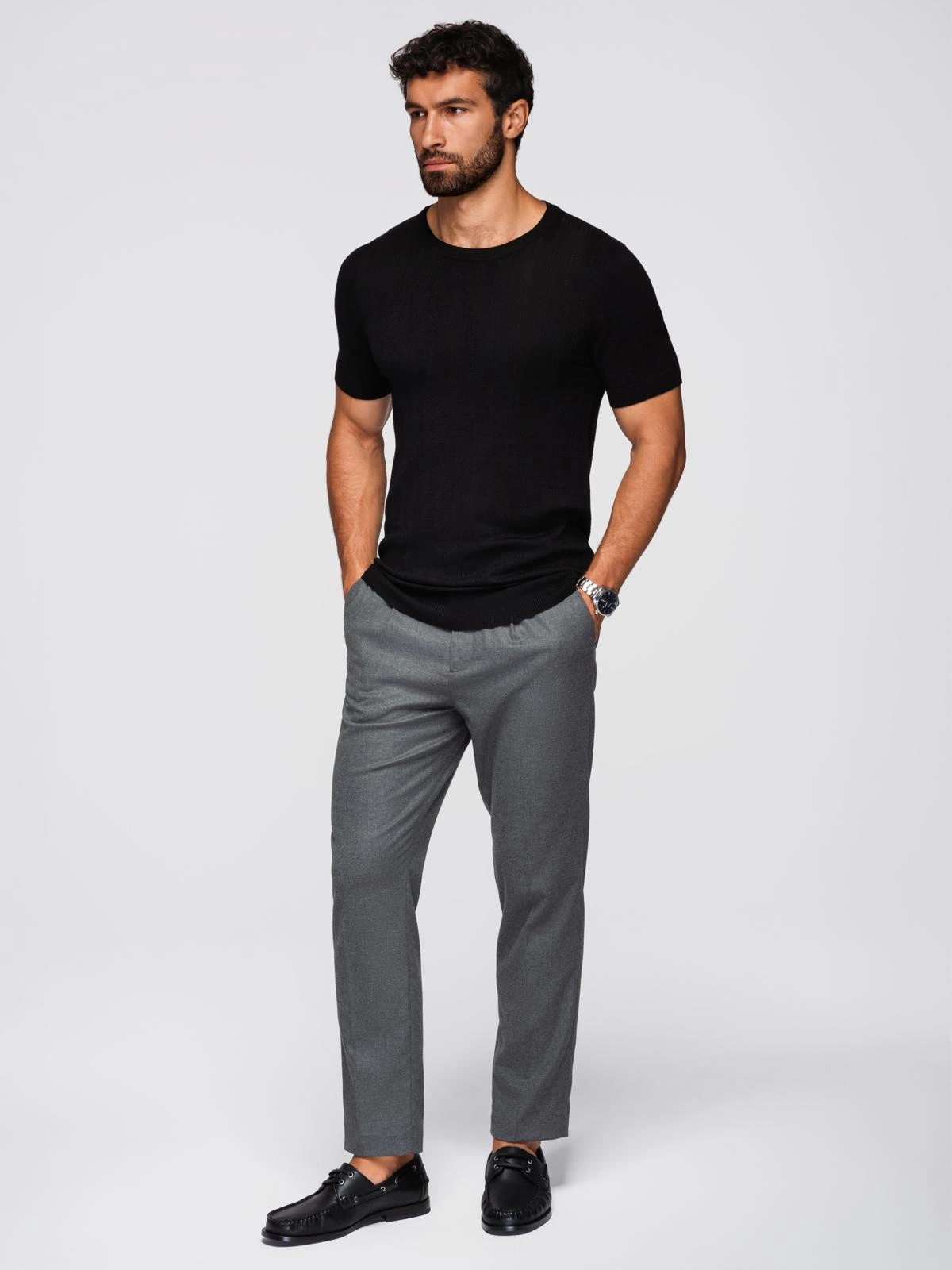 Pánský prolamovaný svetr s kulatým výstřihem a krátkými rukávy - černý V2 OM-TSCT-0251