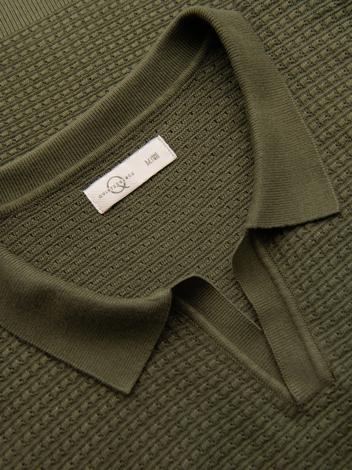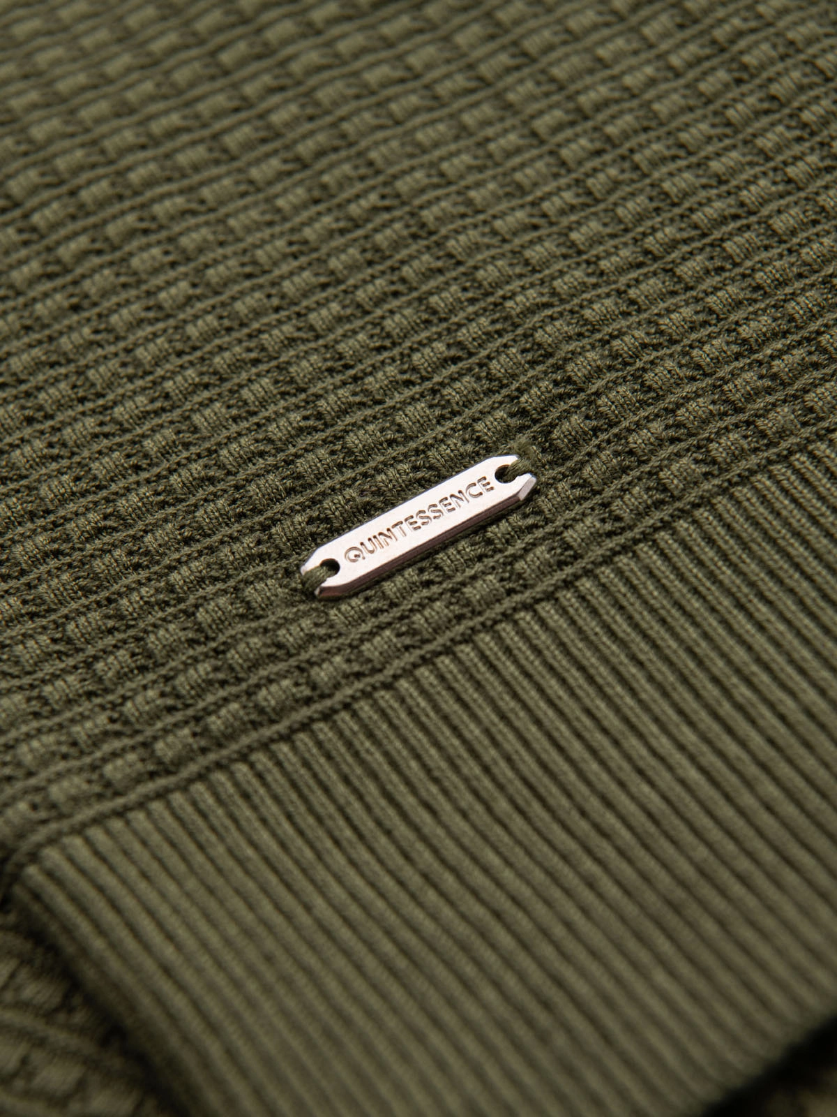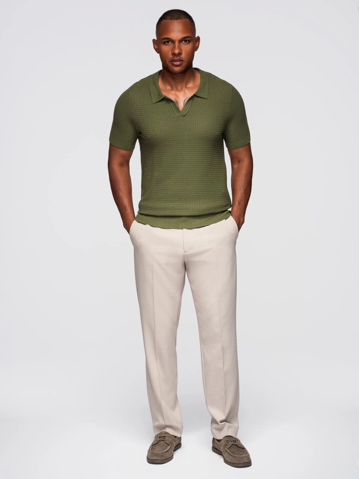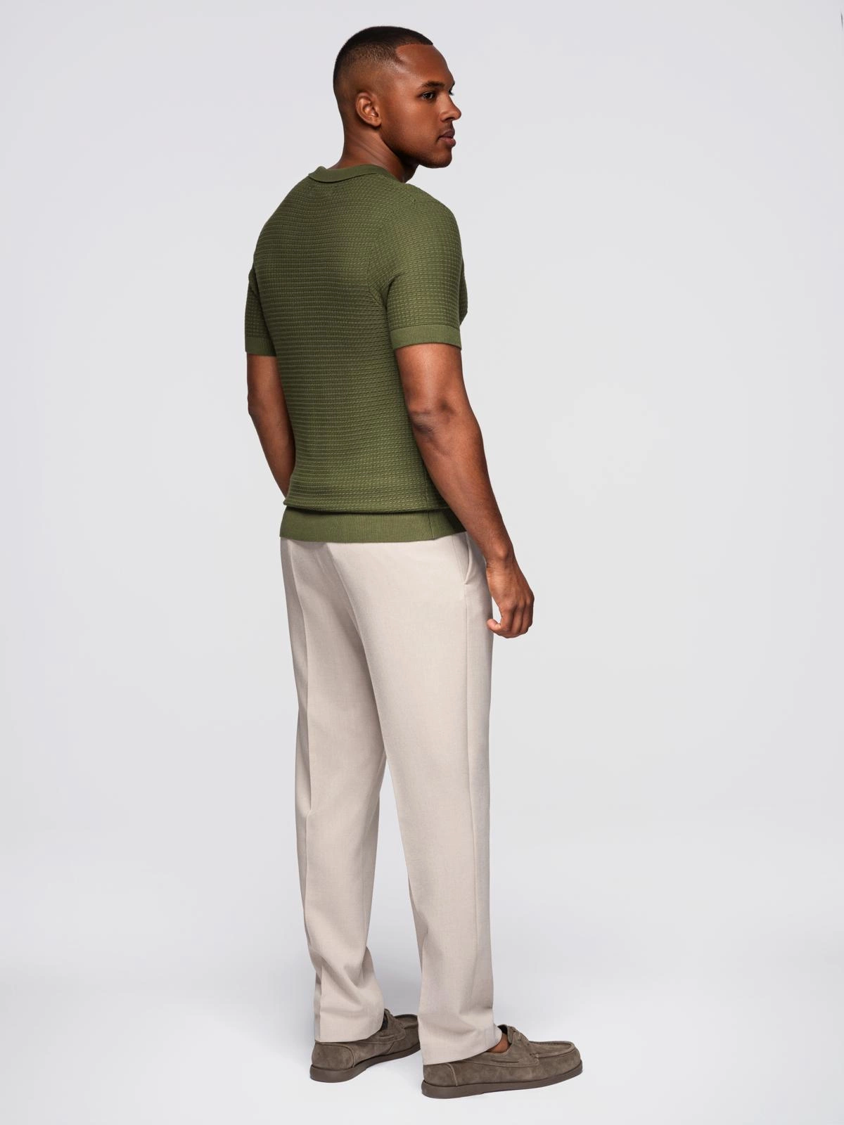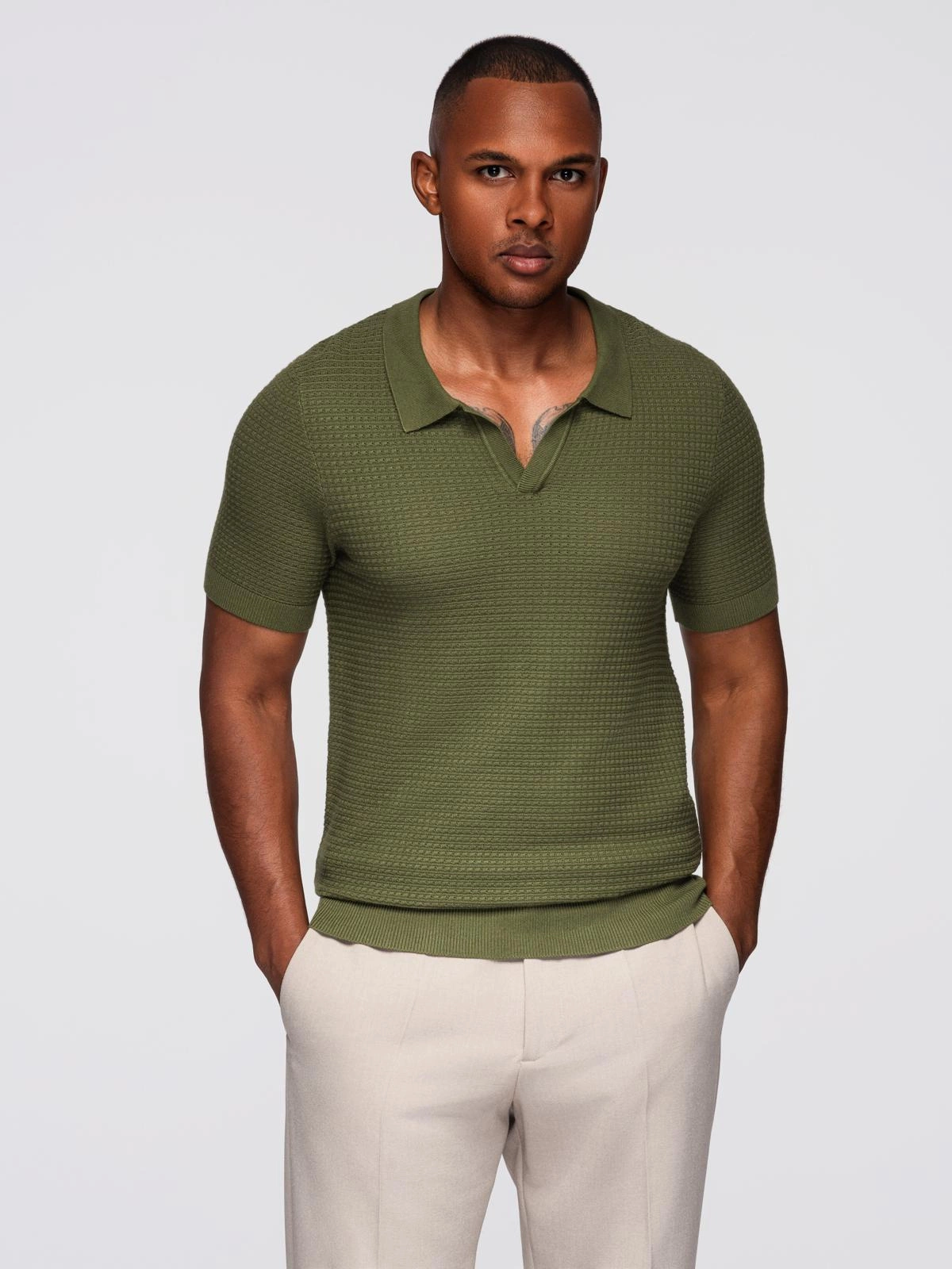 Pánská pletená polokošile bez knoflíků - olivová V1 OM-POSS-0157