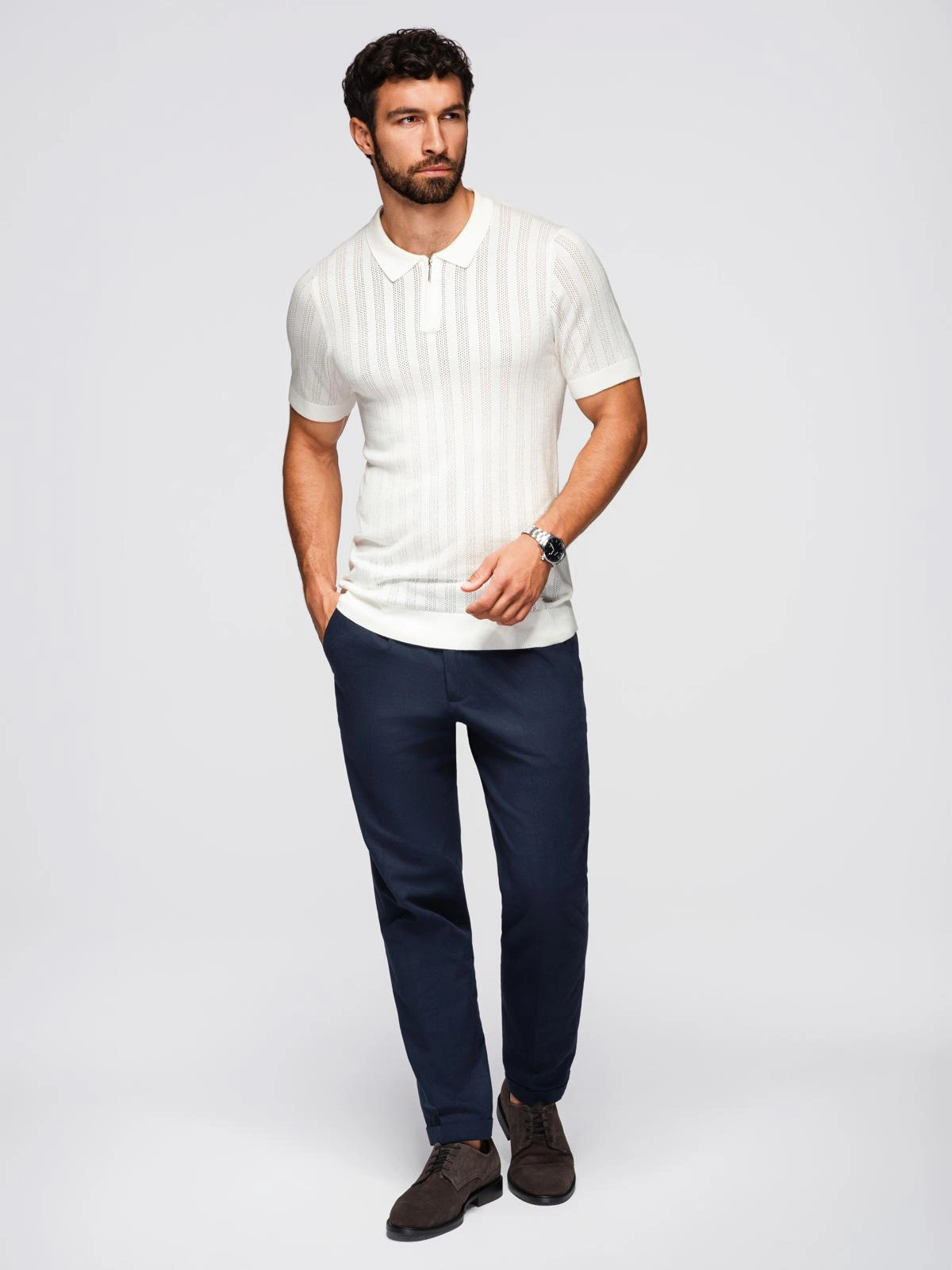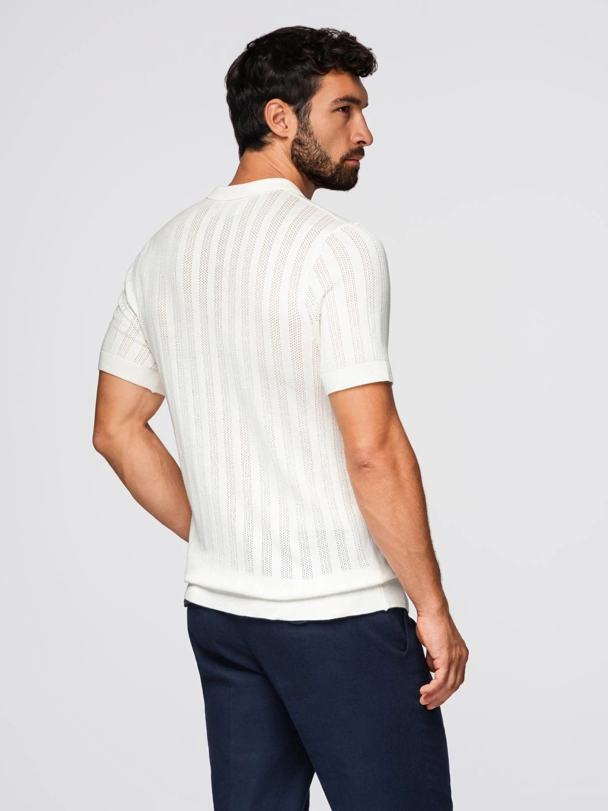 Pánská prolamovaná polokošile se zipem u výstřihu - bílá V1 OM-POSS-0158
