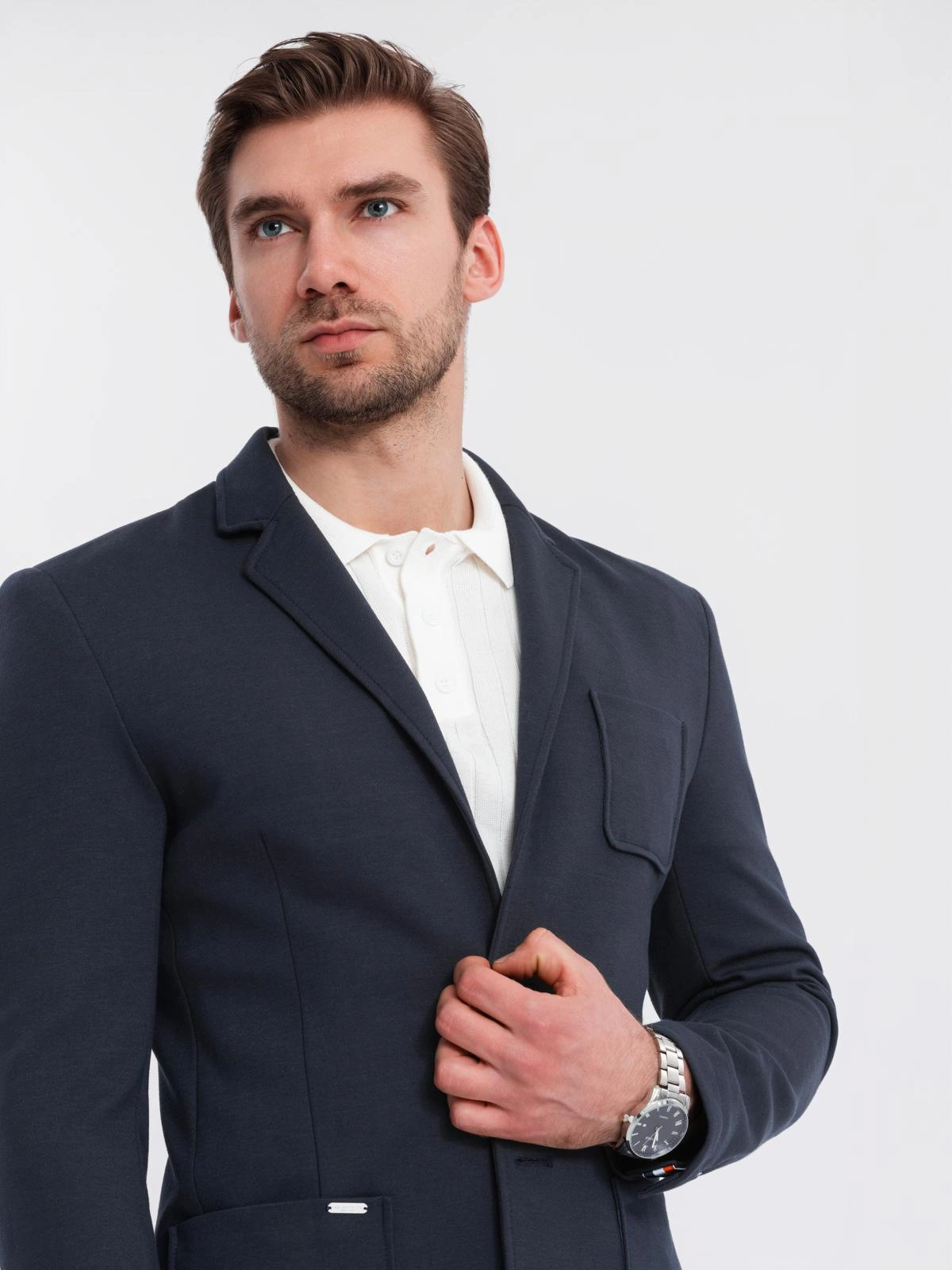 Pánská bunda SLIM z jemně strukturovaného úpletu - tmavě modrá V3 OM-BLZB-0101