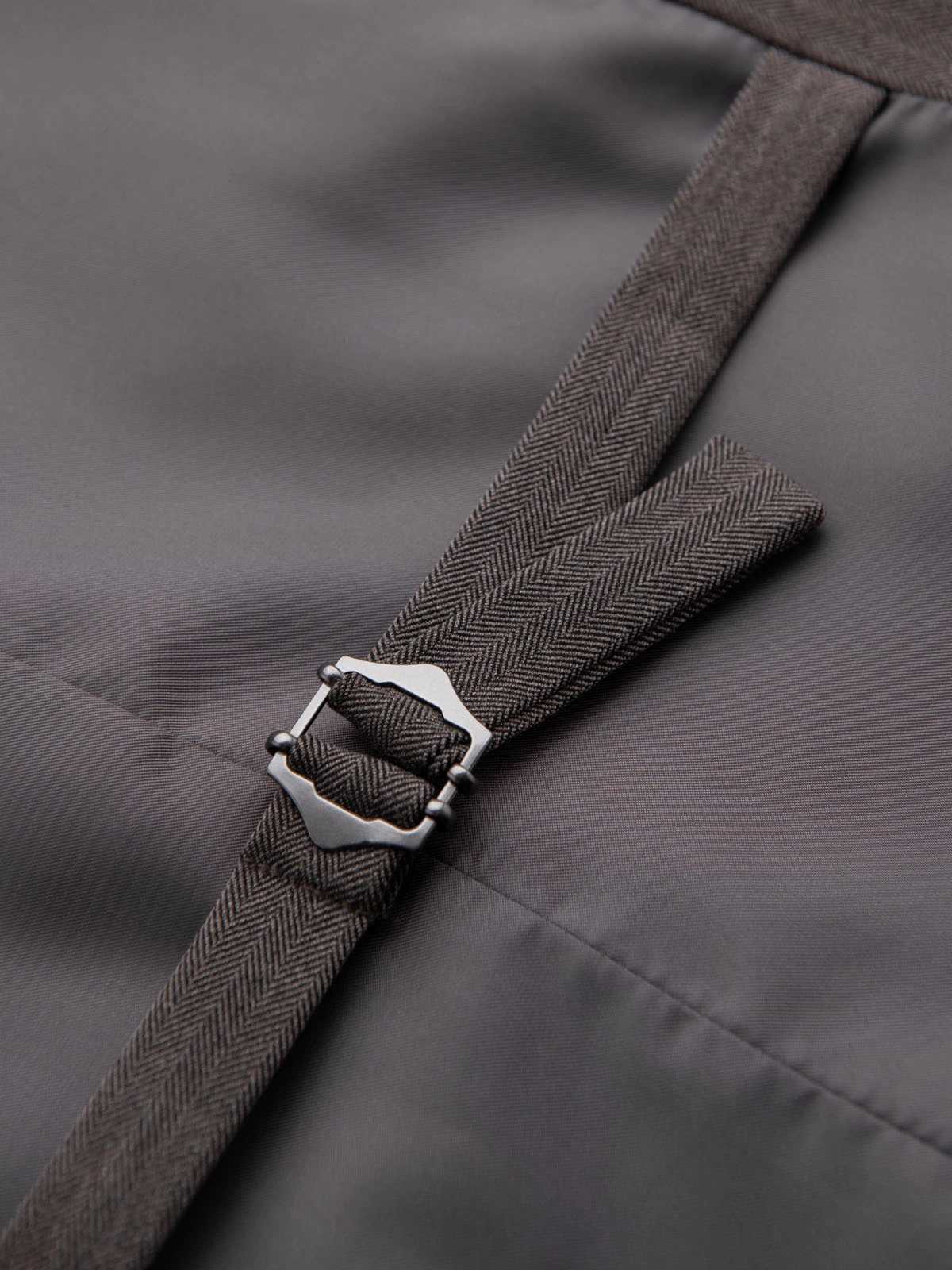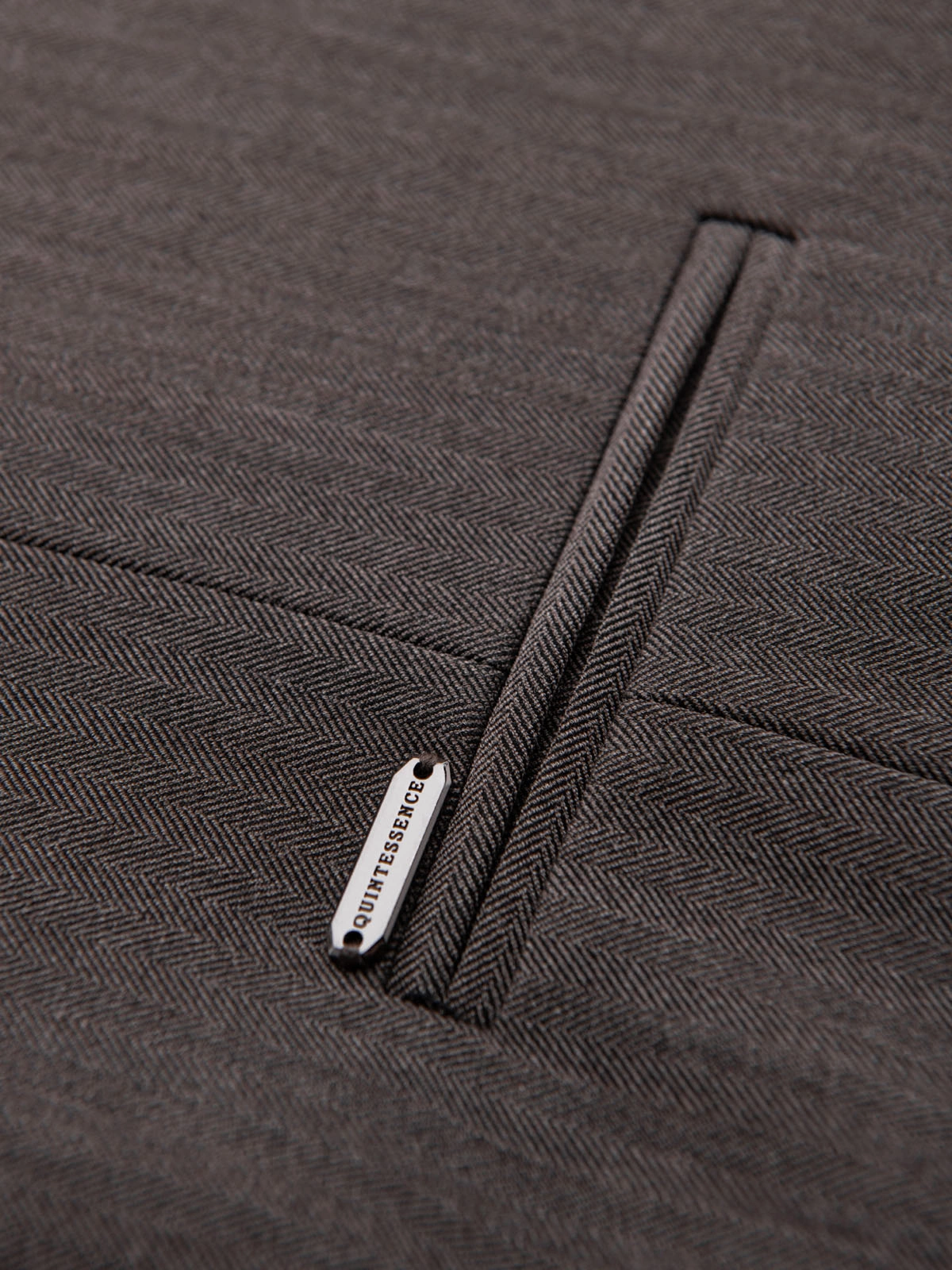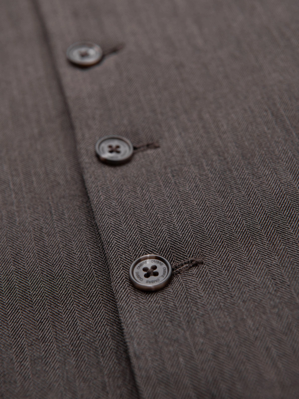 Tato stylová pánská vesta na míru, vyrobená z látky s klasickým vzorem rybí kosti, je dokonalým doplňkem elegantního ležérního stylu. Díky svému modernímu střihu slim fit zvýrazňuje siluetu a poskytuje elegantní a zároveň ležérní vzhled. Díky decentní značce a promyšleným detailům je univerzální volbou do kanceláře i na společenské akce. Dobře se kombinuje s košilí i rolákem. Všestranný základ pro elegantní ležérní i formálnější outfity. - Vytvořte si s ní kompletní vzhled!