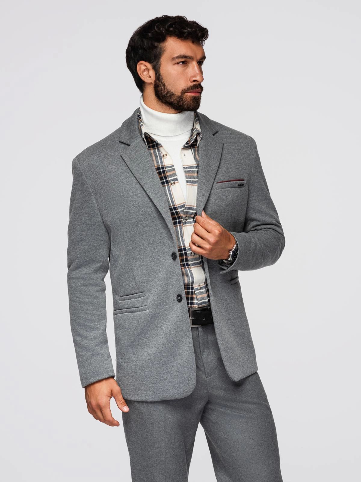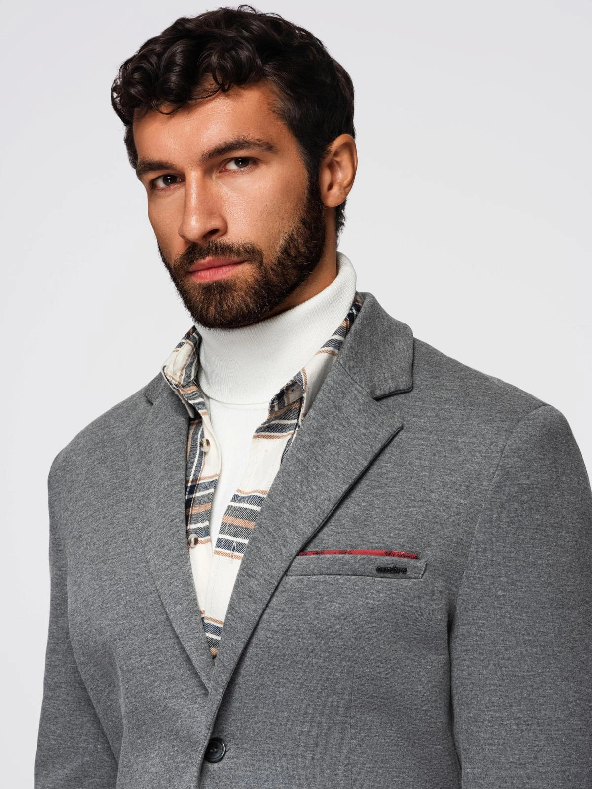 Pánské pletené sako ve fitted střihu - světle šedé V2 OM-BLZB-0100