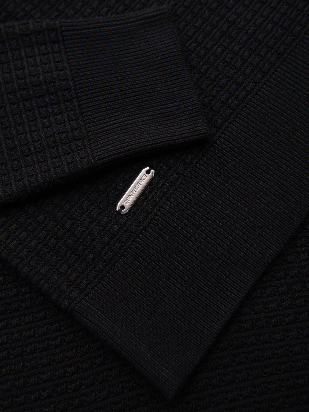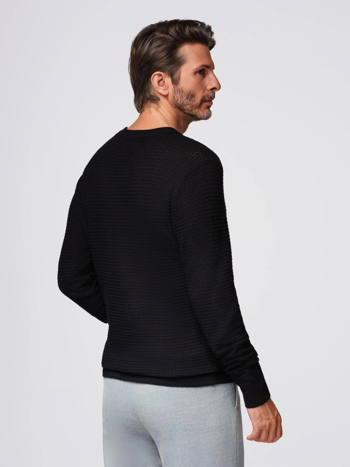 Strukturovaný pánský svetr s kulatým výstřihem - černý V3 OM-SWSW-0181