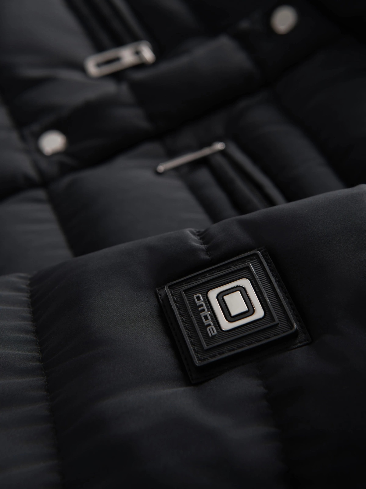 Pánská prošívaná bunda se stojáčkem a zipy na hrudi - černá V1 OM-JALP-0260