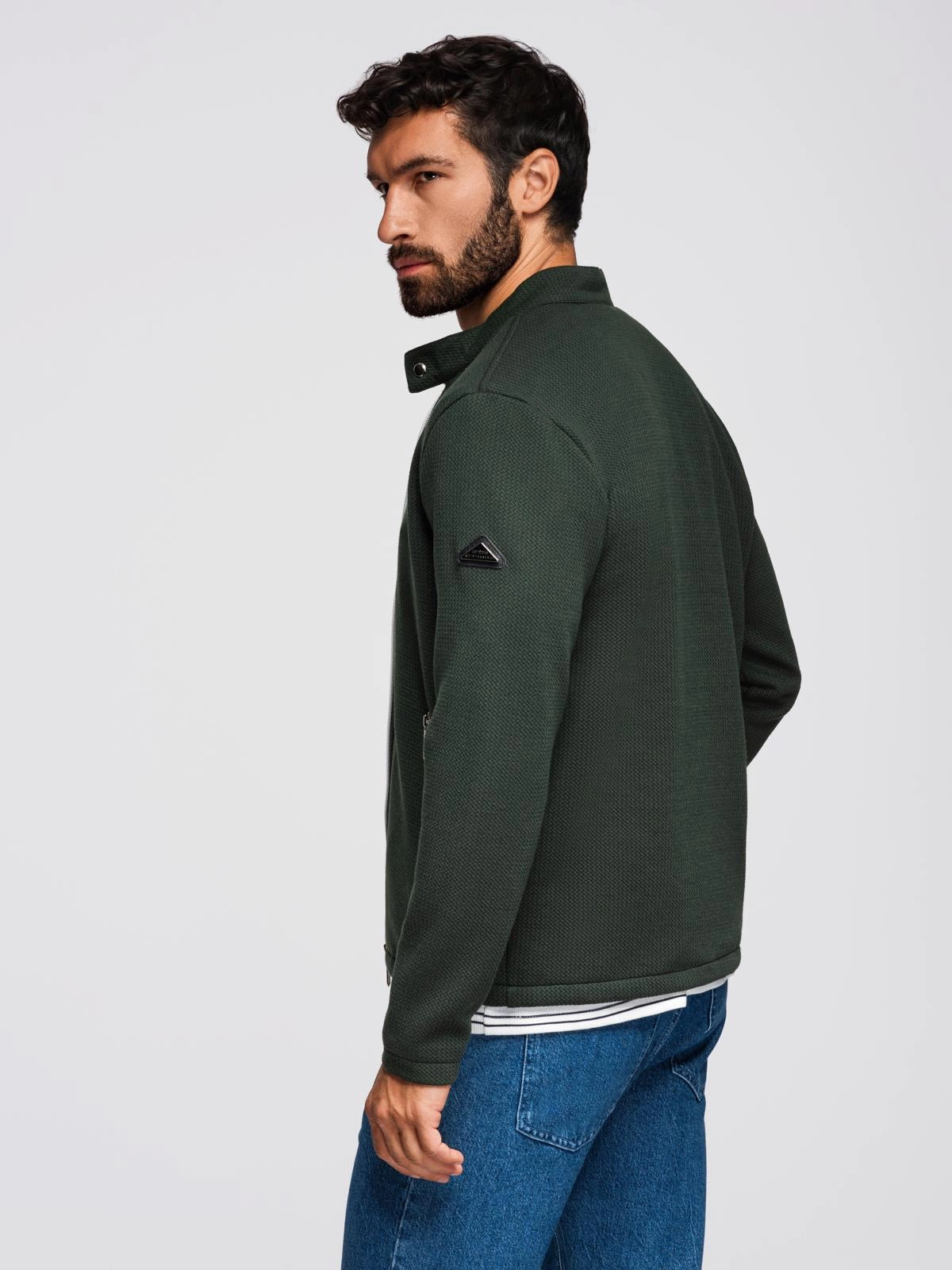 Pánská strukturovaná bunda se stojáčkem - tmavě zelená V3 OM-JANP-0229