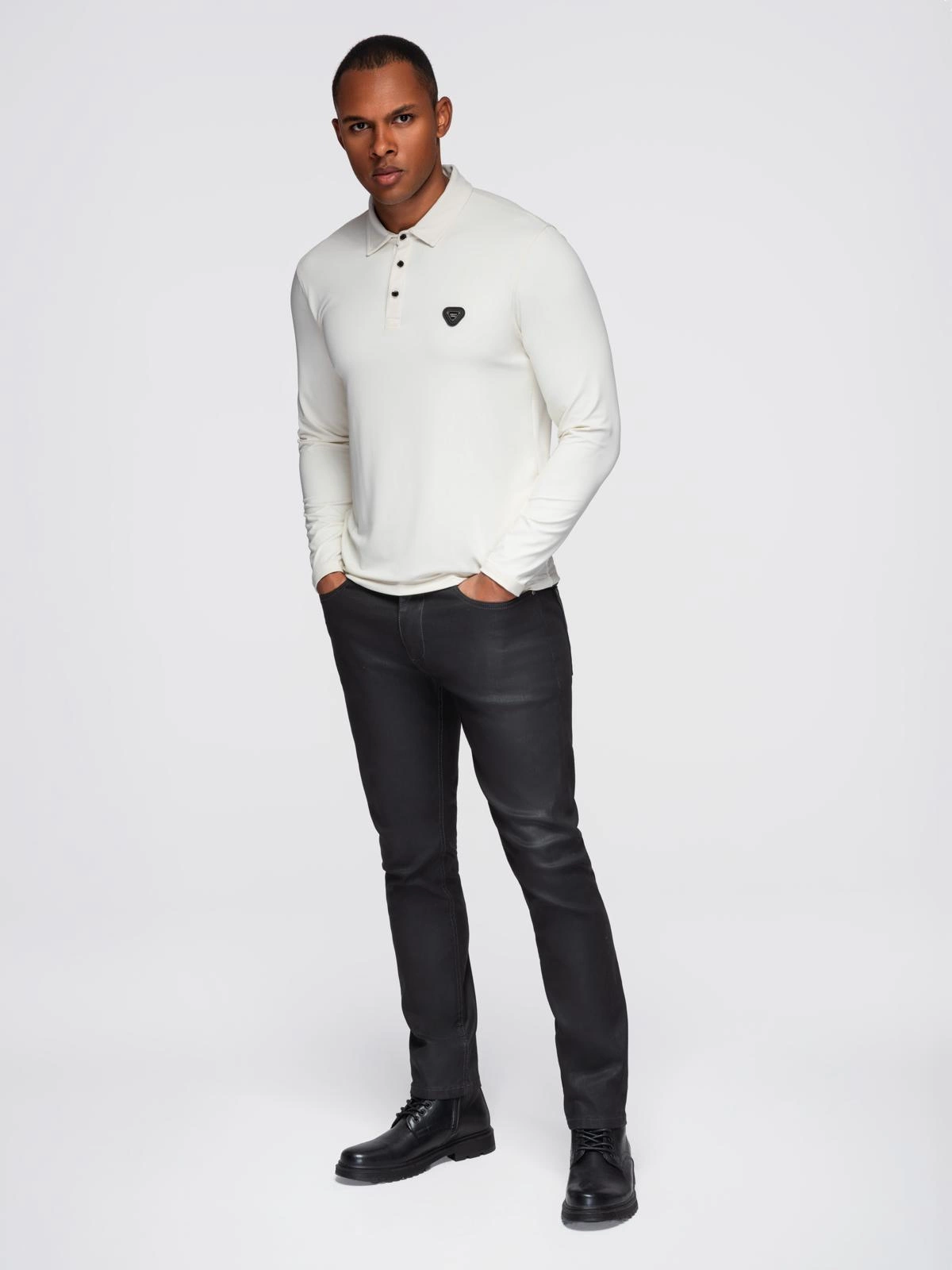 Polokošile s dlouhým rukávem a elegantními značkovými knoflíky - krémová V2 OM-POLS-0139