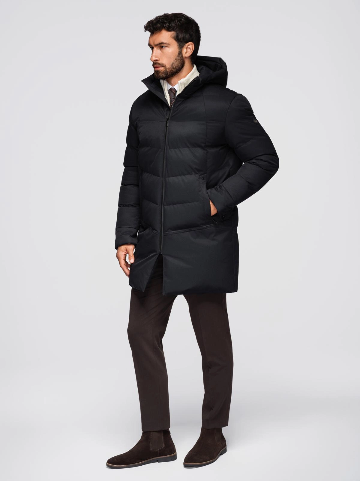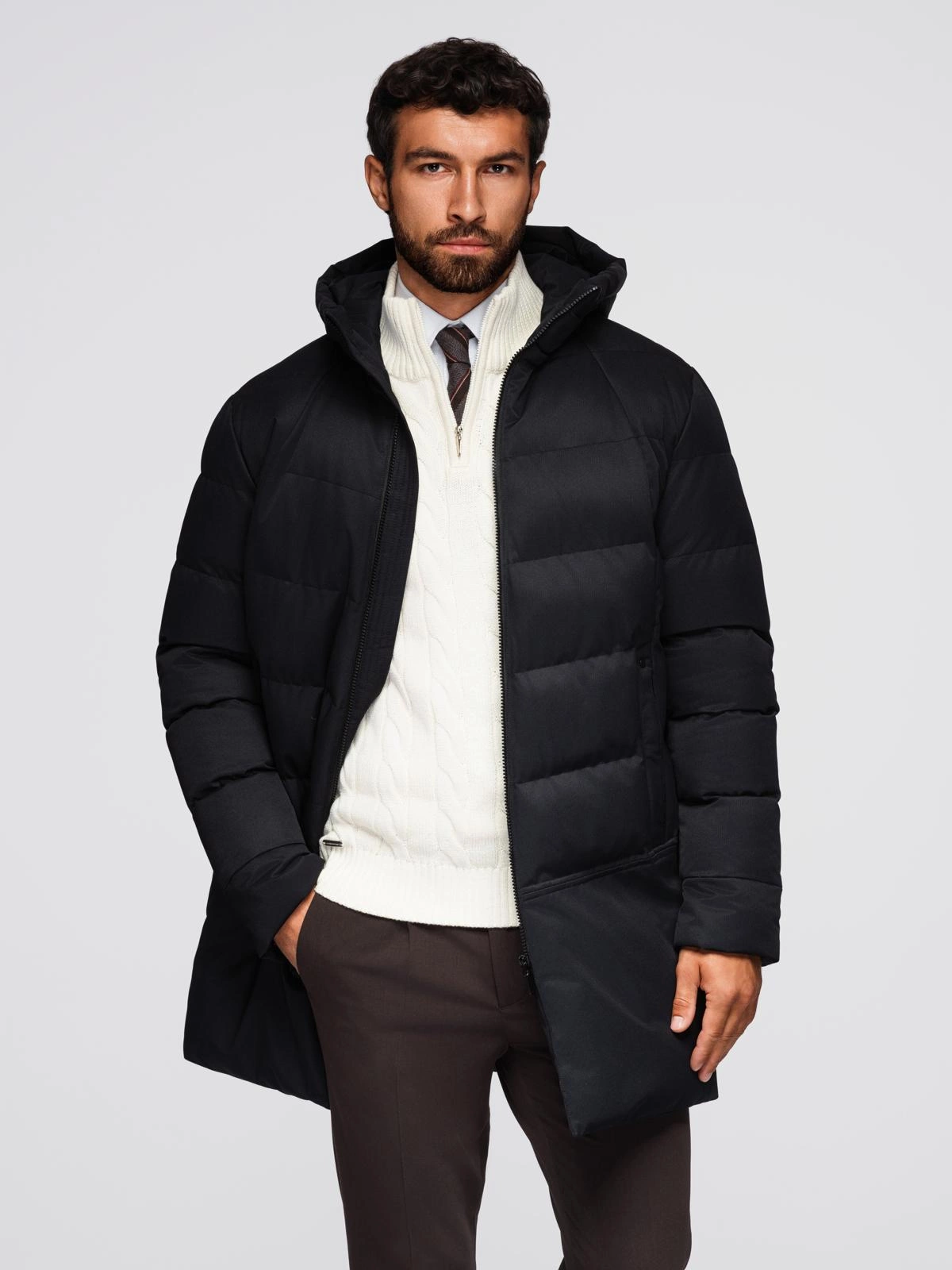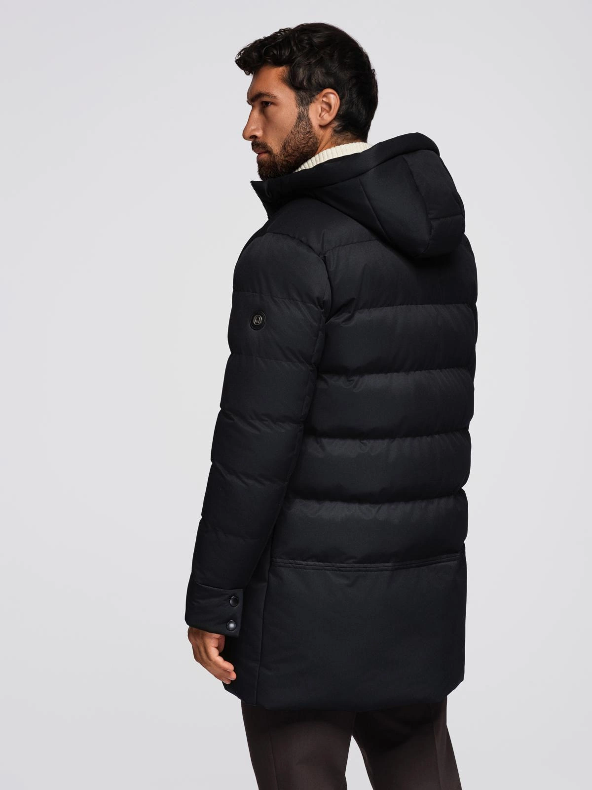 Pánská dlouhá prošívaná bunda s kapucí - černá V1 OM-JALJ-0264
