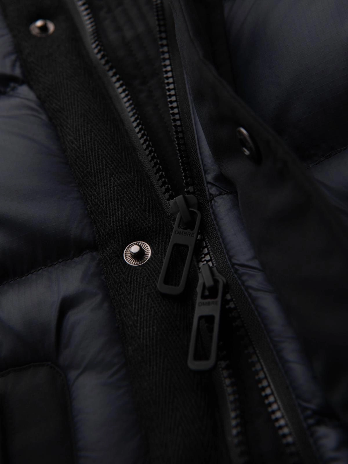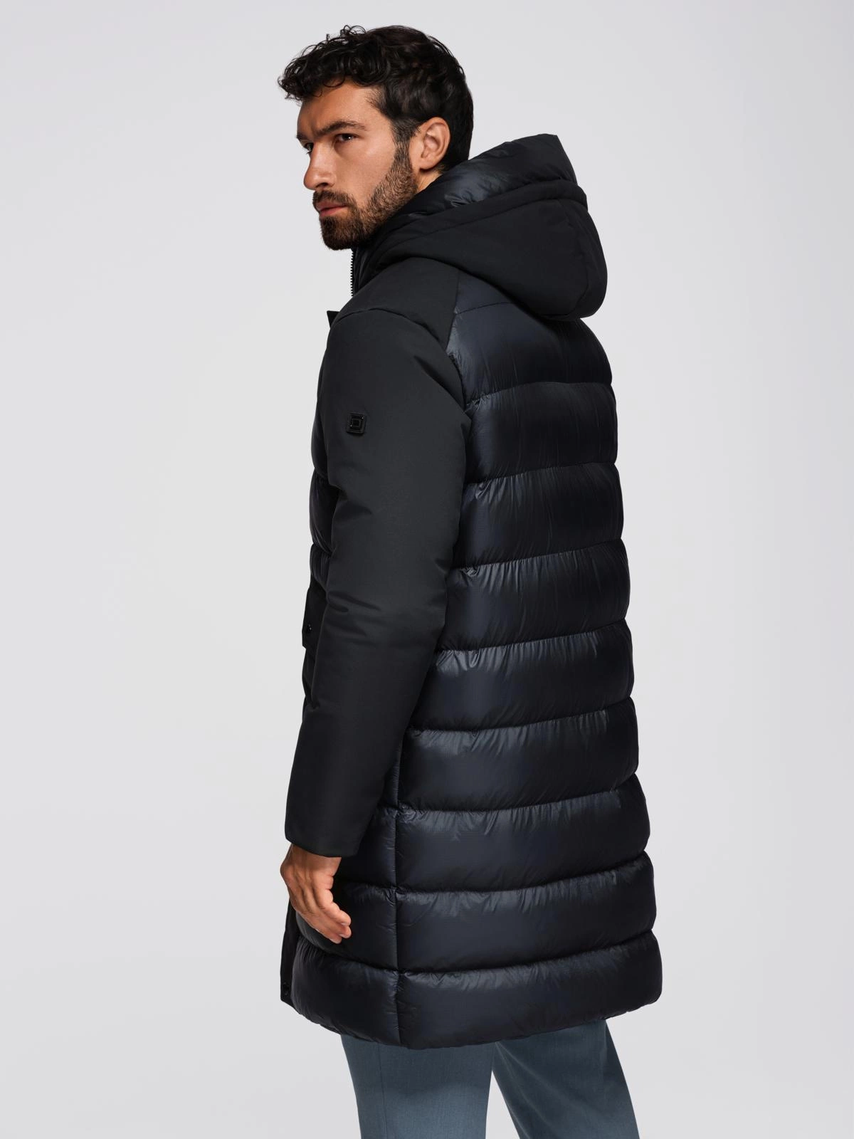 Pánská dlouhá prošívaná bunda s velkými kapsami - černá V1 OM-JALJ-0308