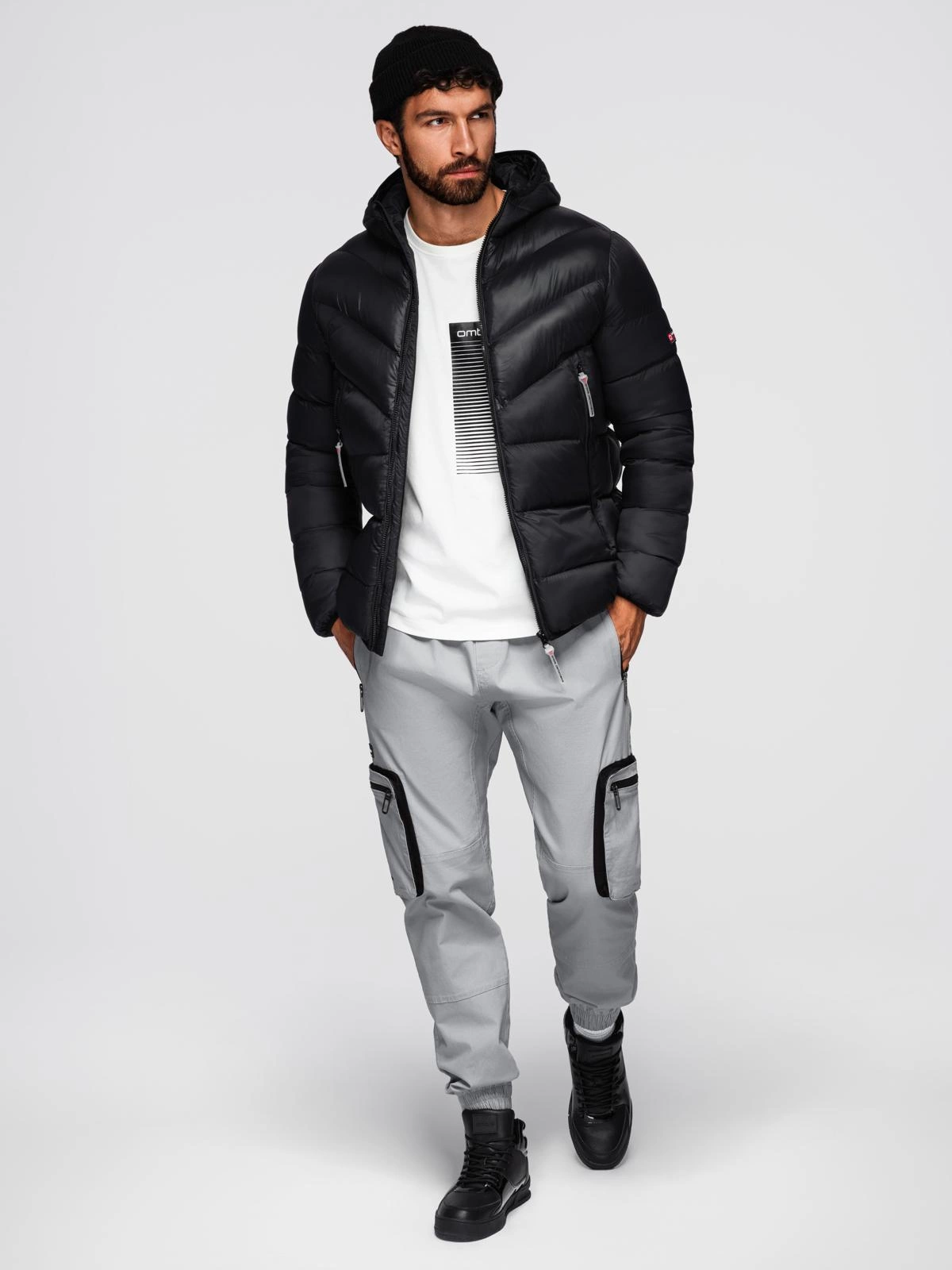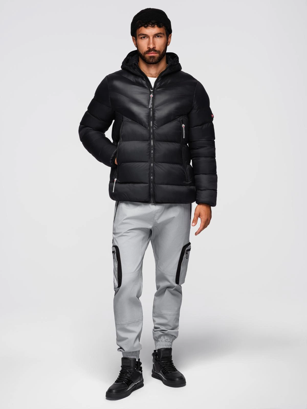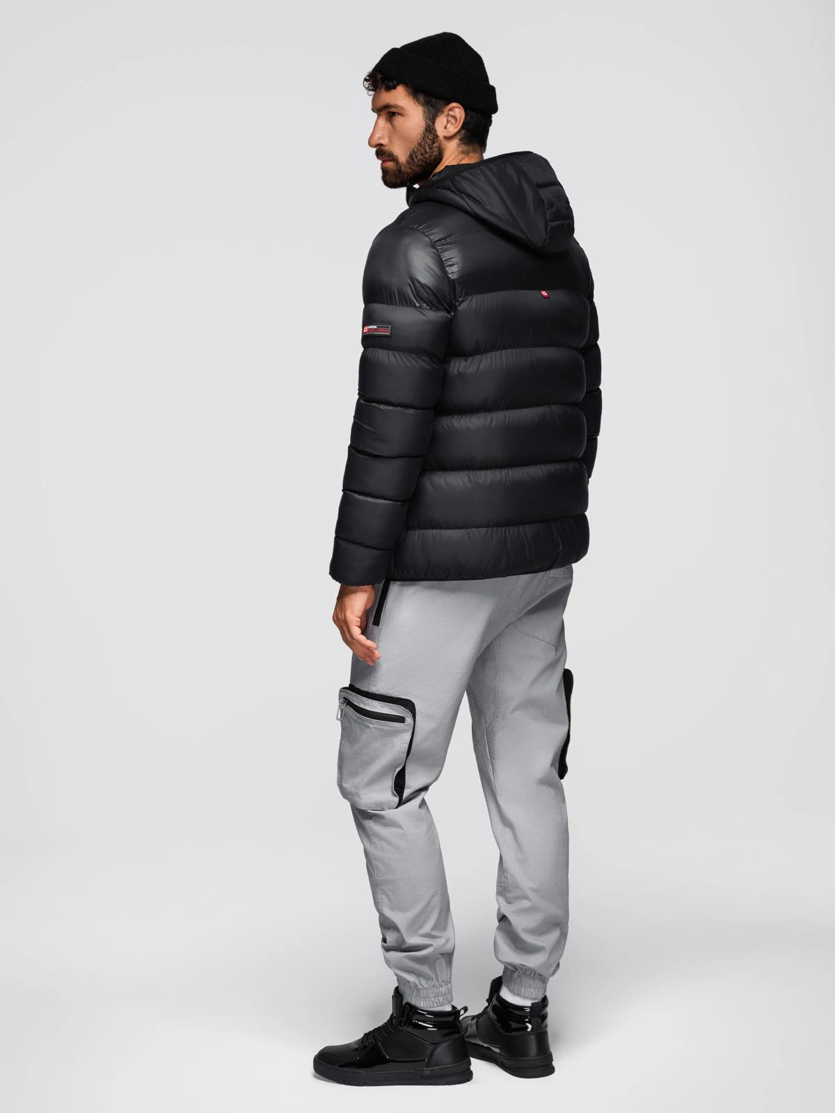 Pánská moderní prošívaná bunda z kombinovaných materiálů - černá V1 OM-JAHP-0303