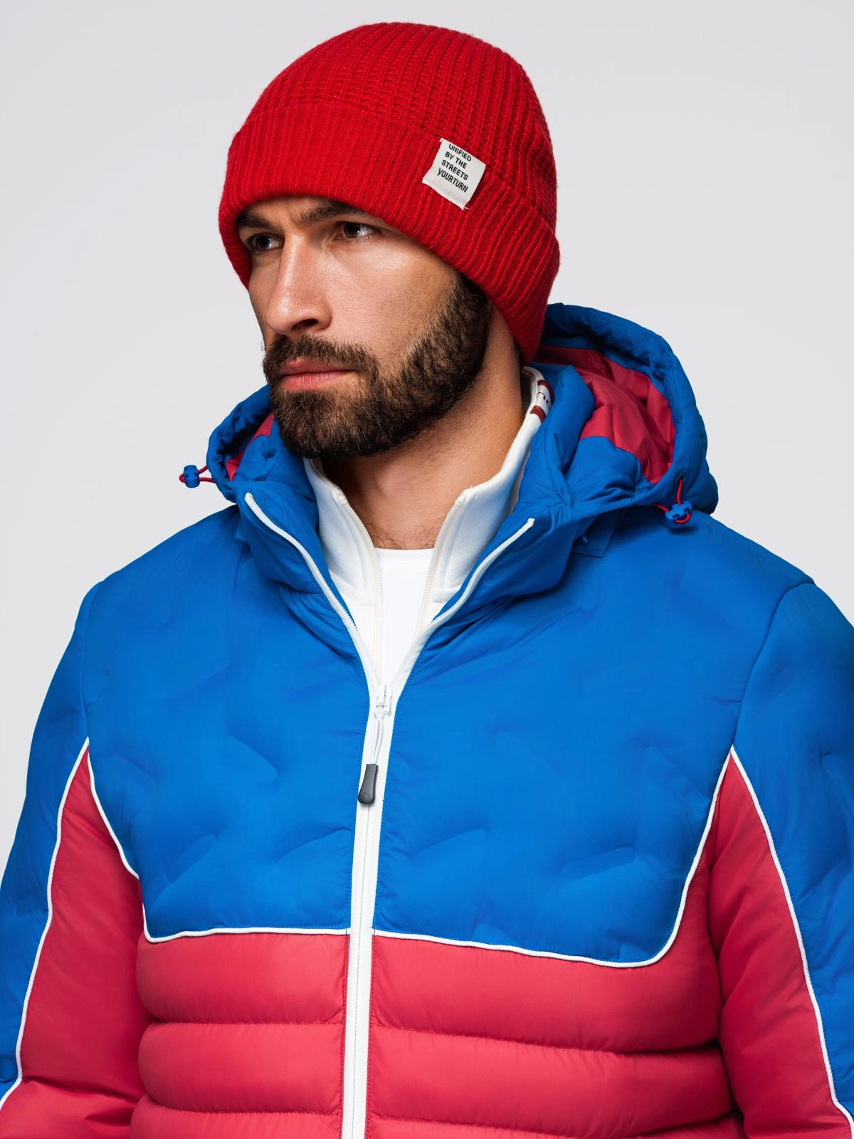 Pánská prošívaná bunda s odepínací kapucí - modrá a červená V1 OM-JALP-0206