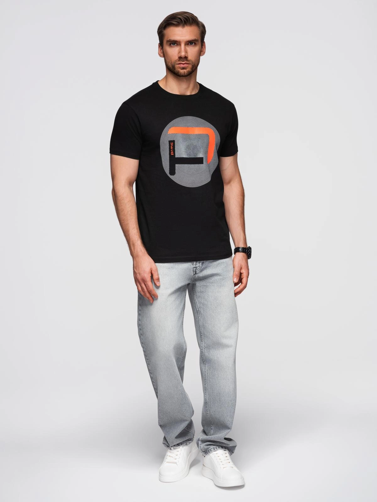 Pánské tričko s velkým potiskem - černé V2 OM-TSPT-0245