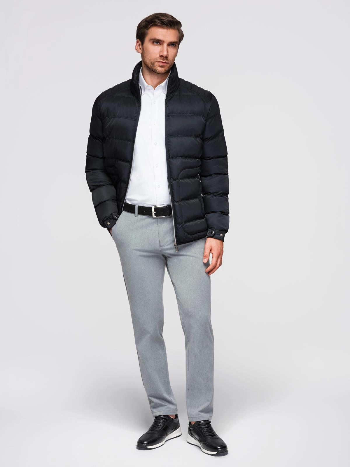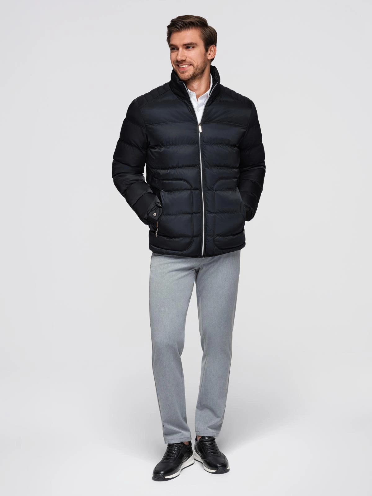 Pánská prošívaná bunda s leskem a stojáčkem - černá V1 OM-JALP-0218