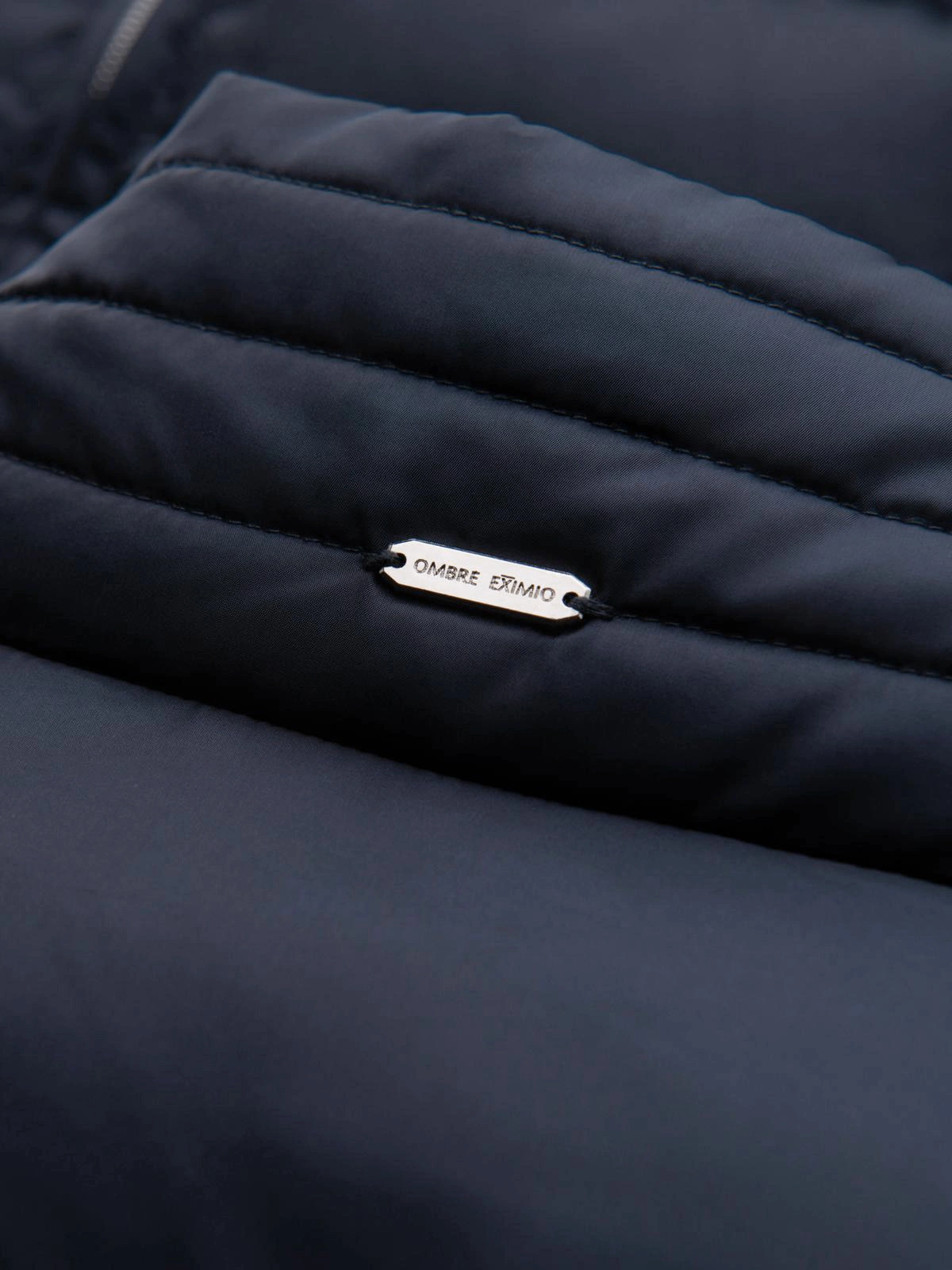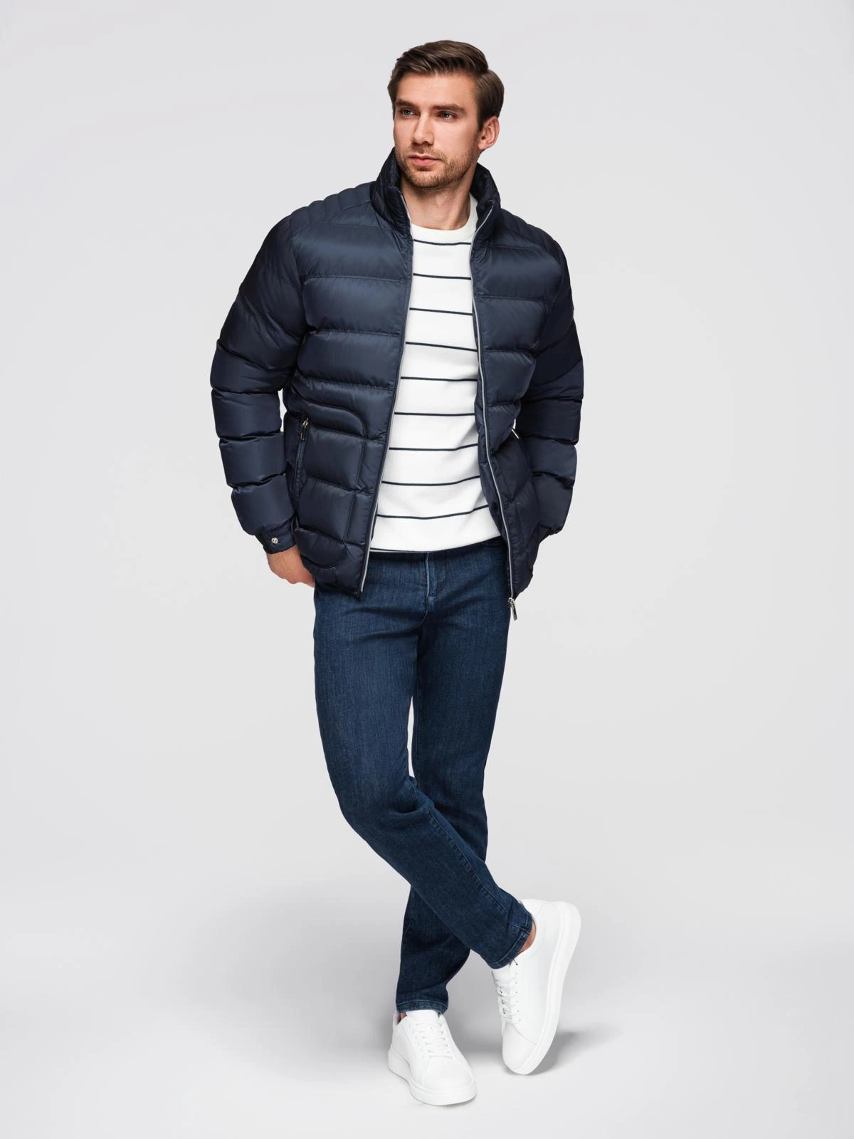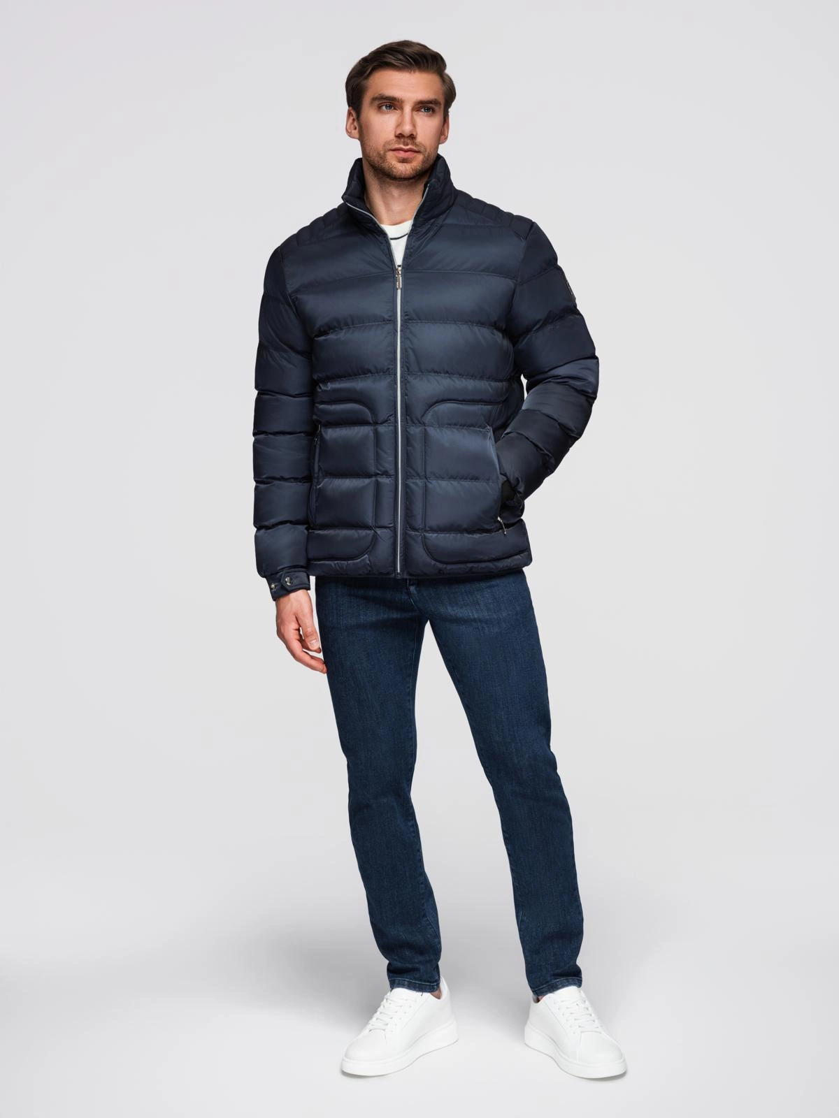 Pánská prošívaná bunda s leskem a stojáčkem - tmavě modrá V2 OM-JALP-0218