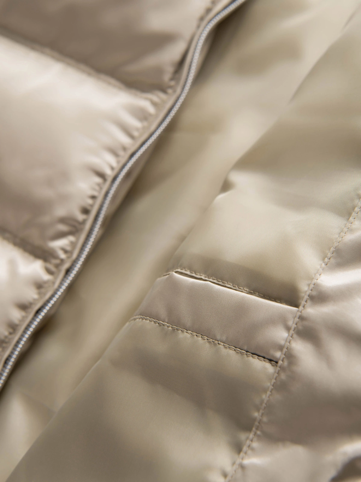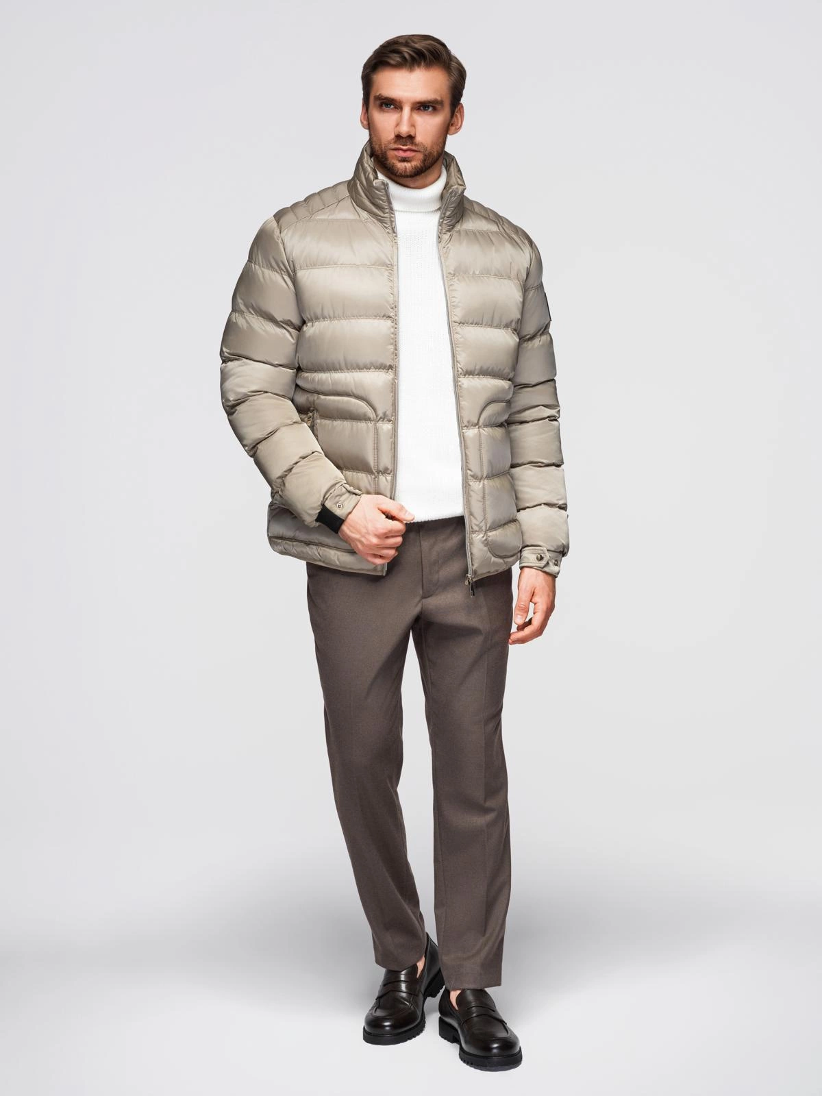 Lehká a zároveň teplá lesklá bunda, která kombinuje eleganci s praktičností. Geometrické prošívání a stojatý límec se zipem jí dodávají moderní nádech, zatímco výrazné doplňky podtrhují mužný styl. Je ideální pro chladnější dny - ať už pro městský nebo ležérní styl - kombinuje pohodlí, ochranu a styl.