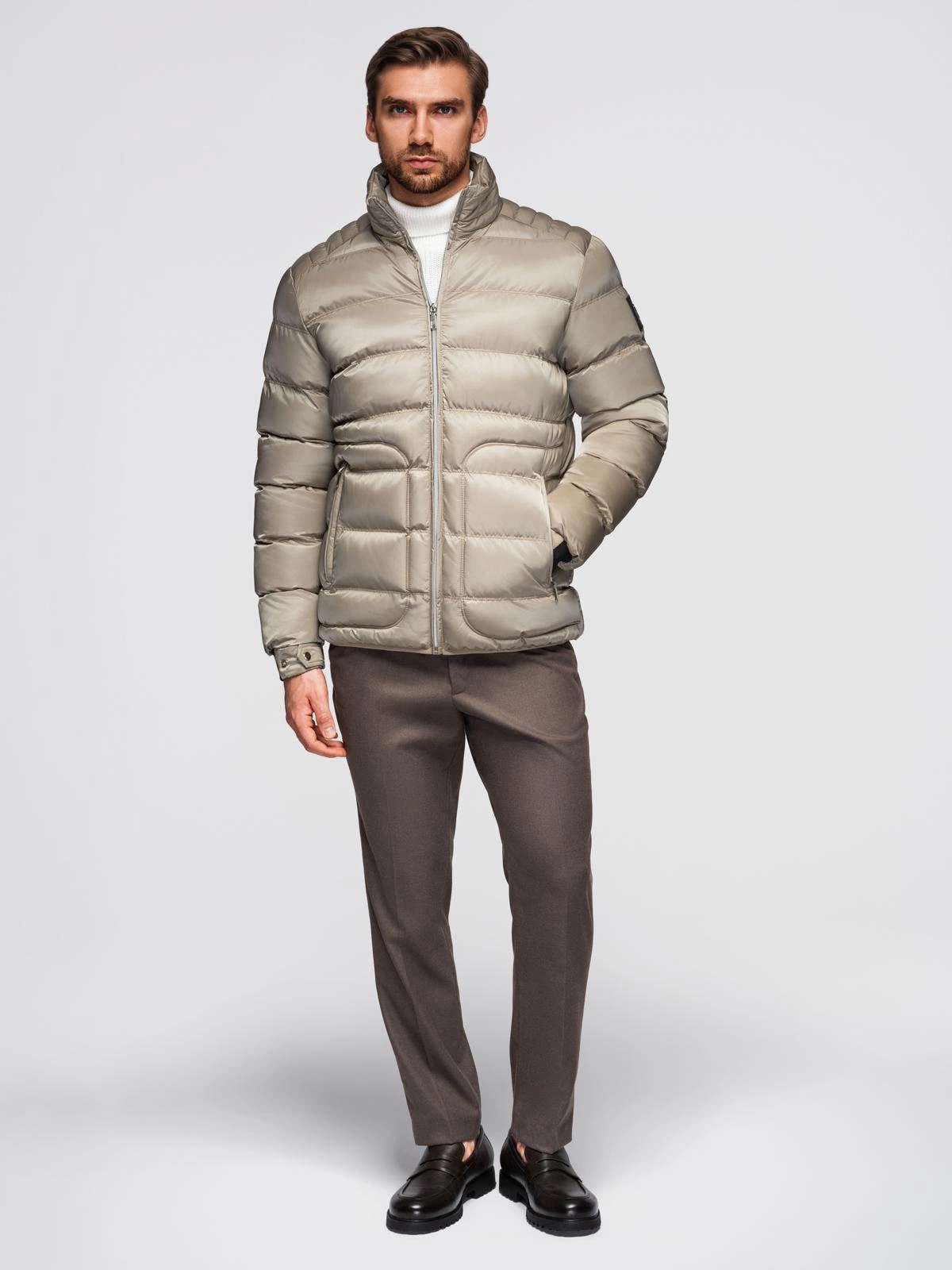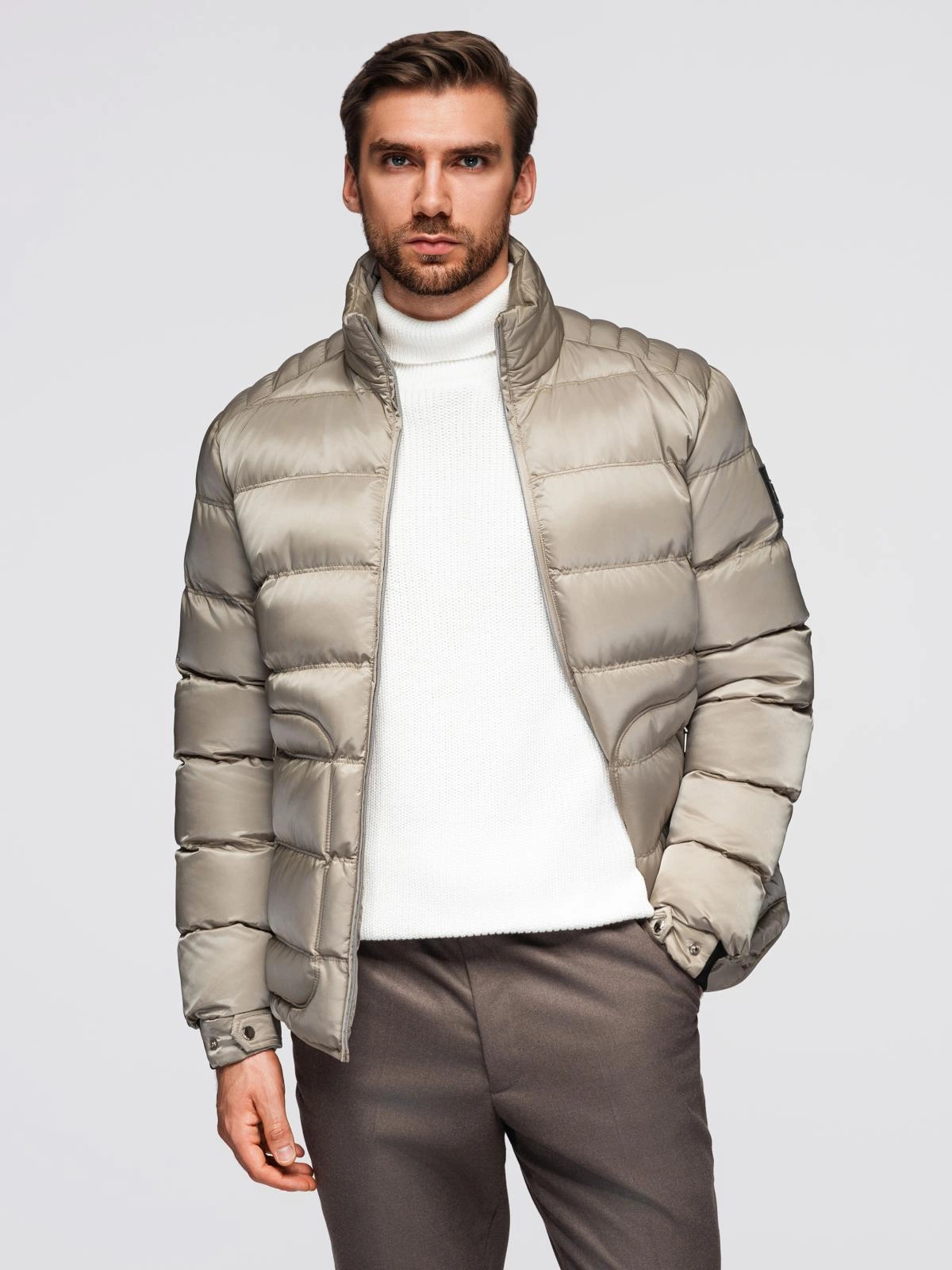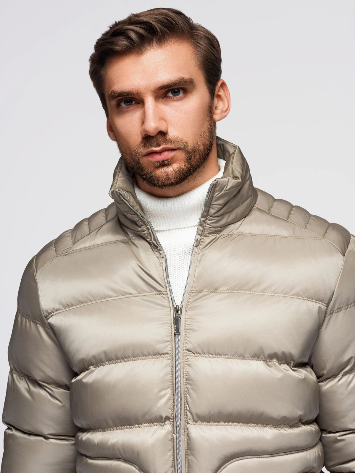 Pánská prošívaná bunda s leskem a stojáčkem - světle šedá V5 OM-JALP-0218
