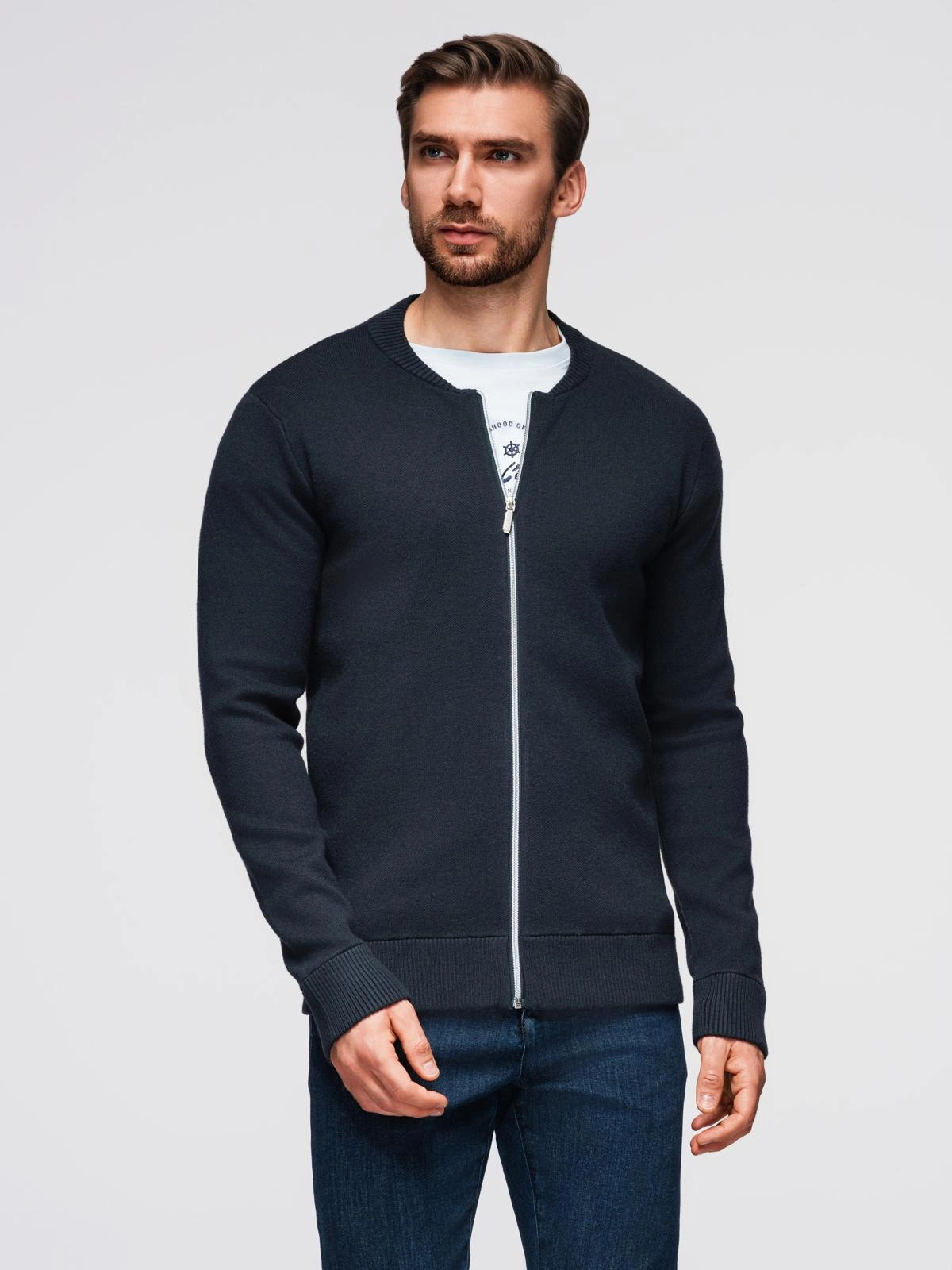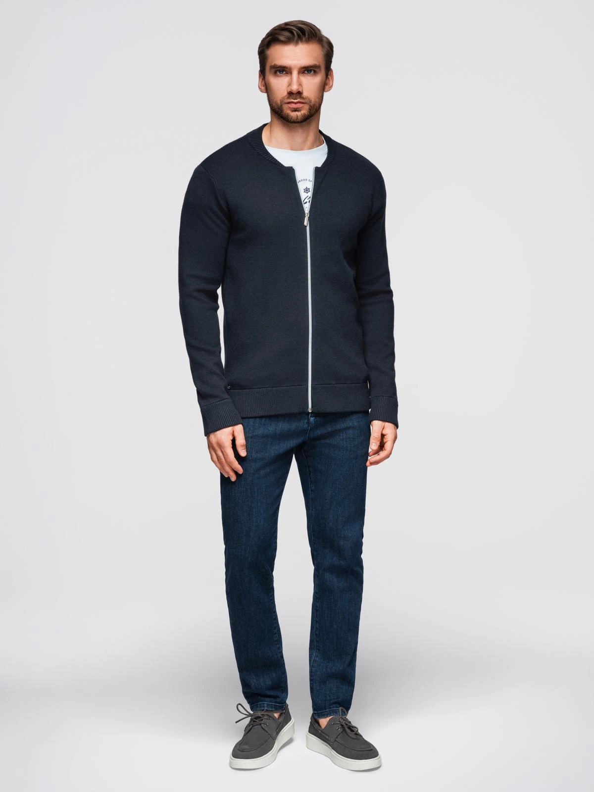 Pánský svetr na zip - tmavě modrý V1 OM-SWZS-0146