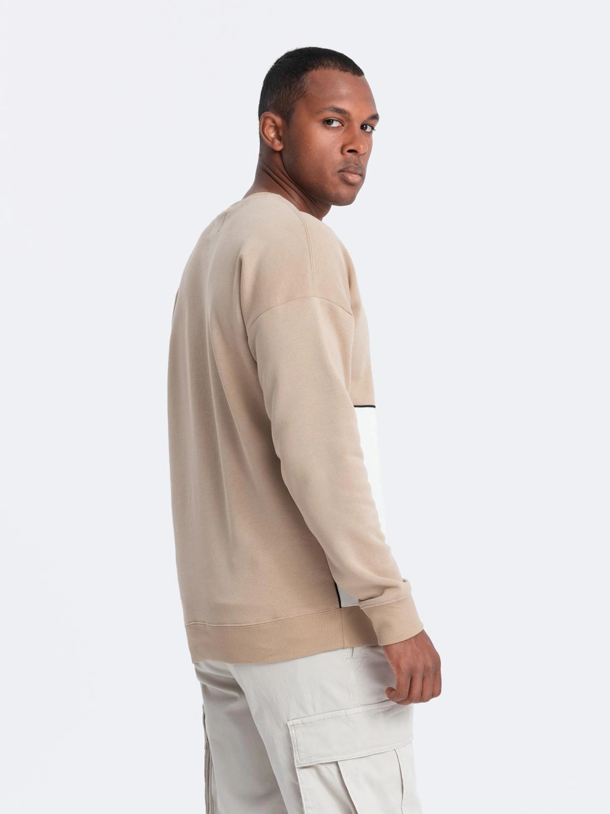 Pánská mikina OVERSIZE s kontrastním prolínáním barev - béžová V2 B1673