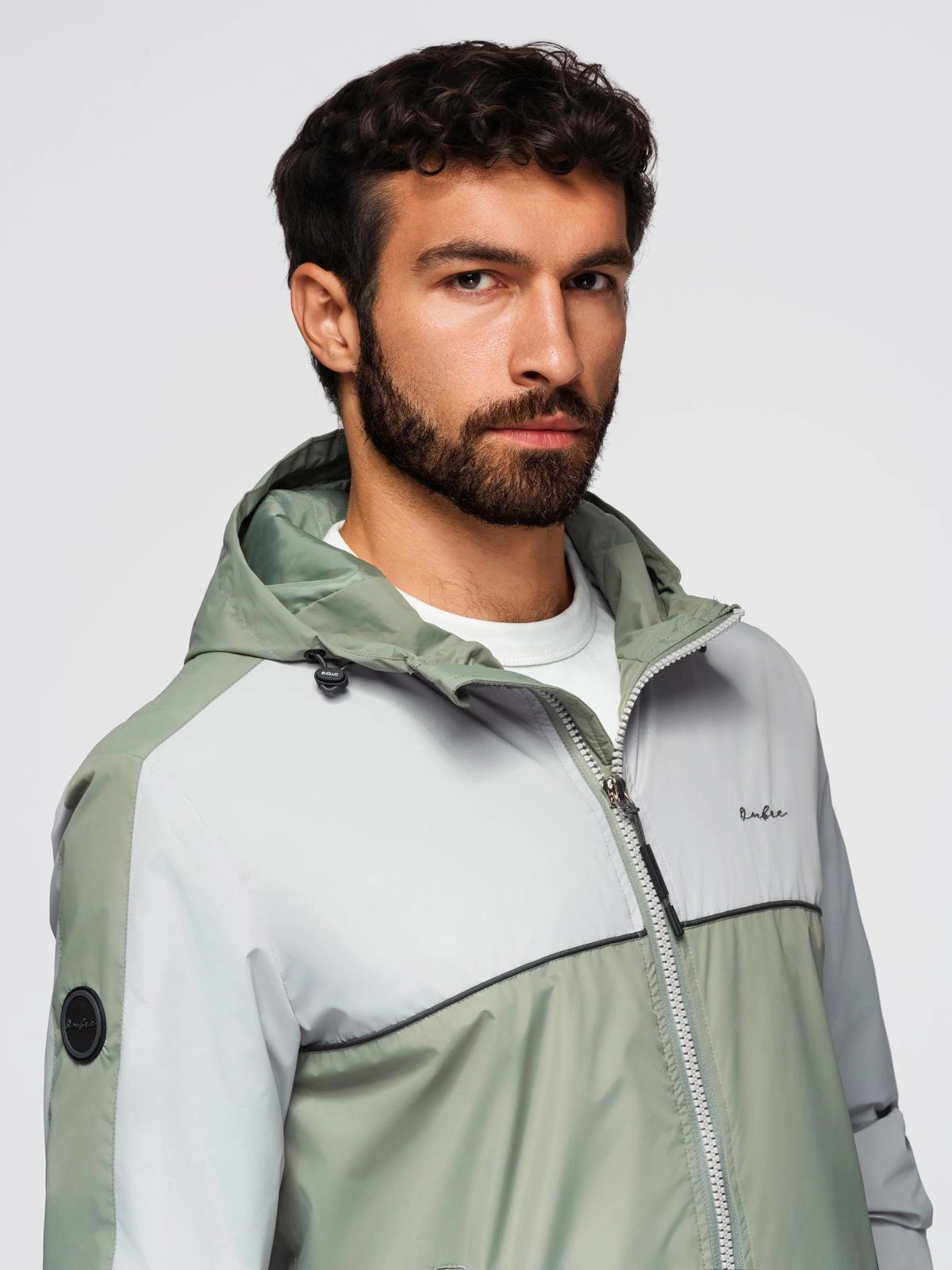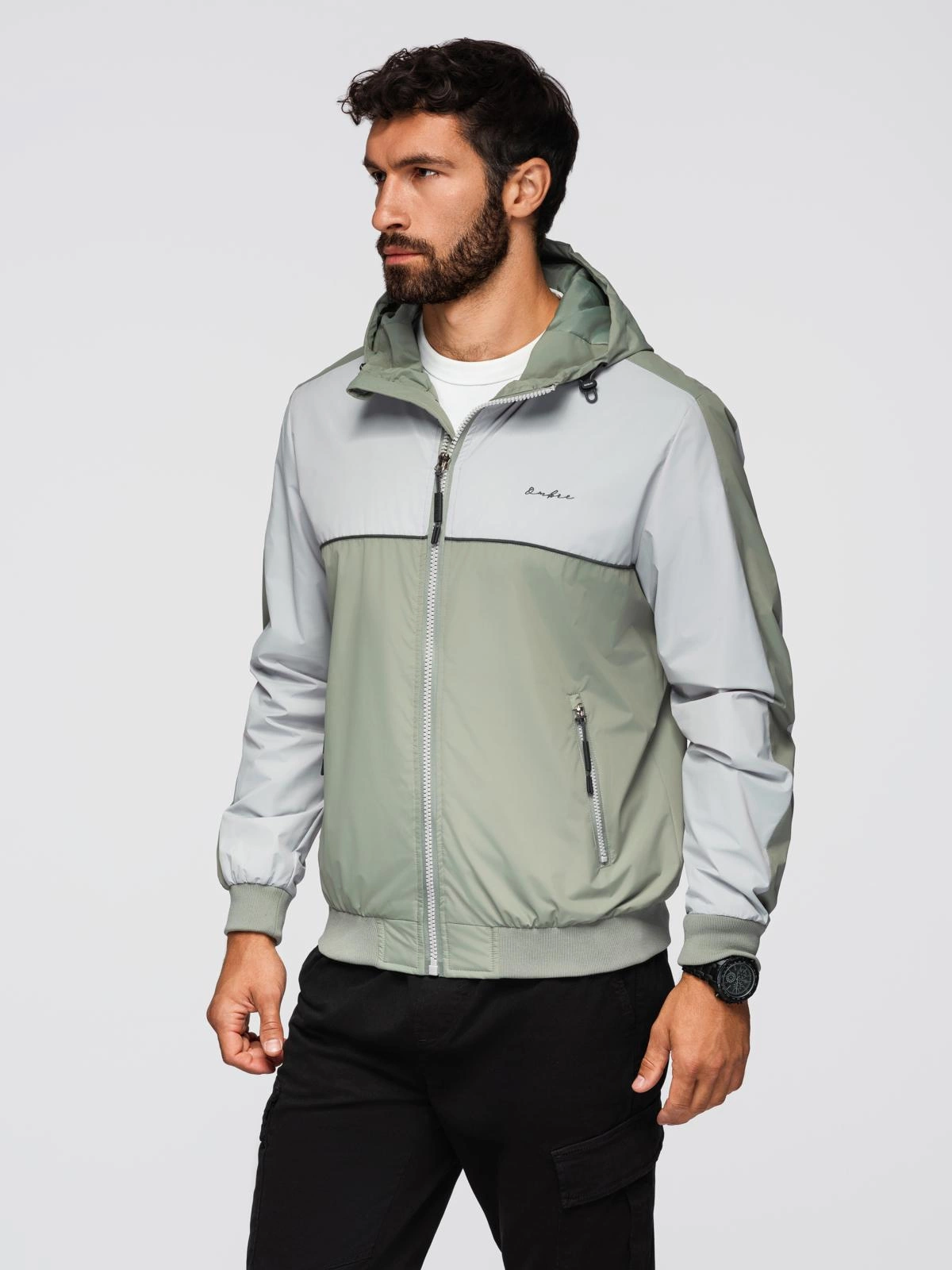 Pánská kontrastní větrovka s kapucí - olivově šedá V3 OM-JANP-0228