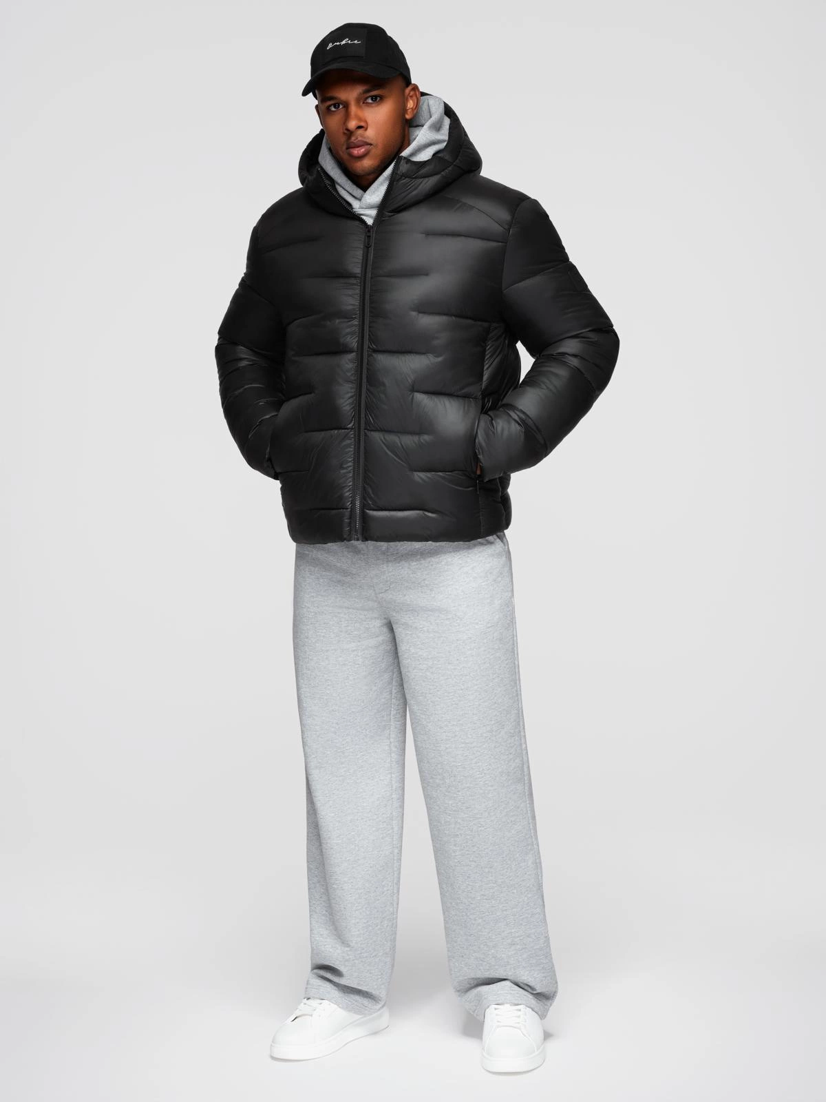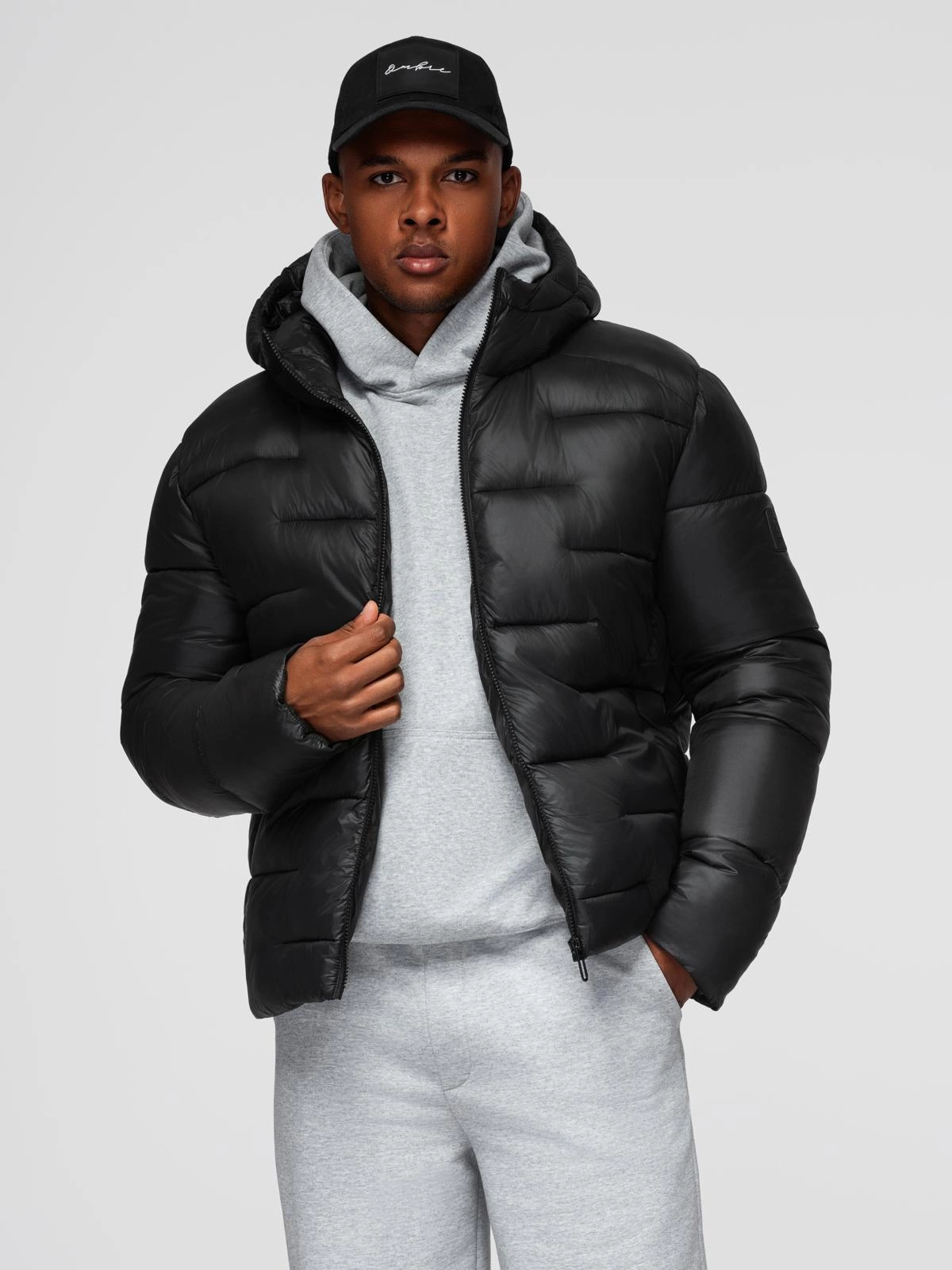 Pánská prošívaná bunda s kapucí - černá V1 OM-JAHP-0235