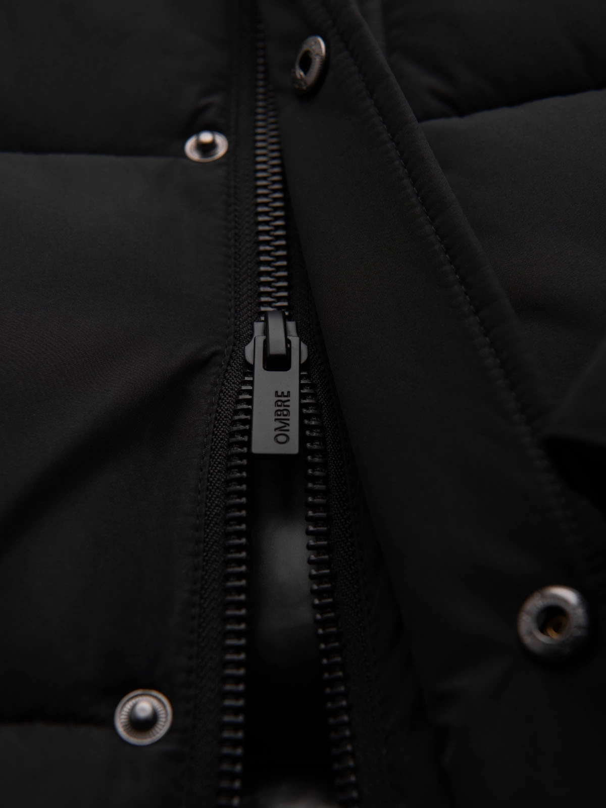 Pánská dlouhá prošívaná zimní bunda s kapucí - černá V1 OM-JALJ-0309