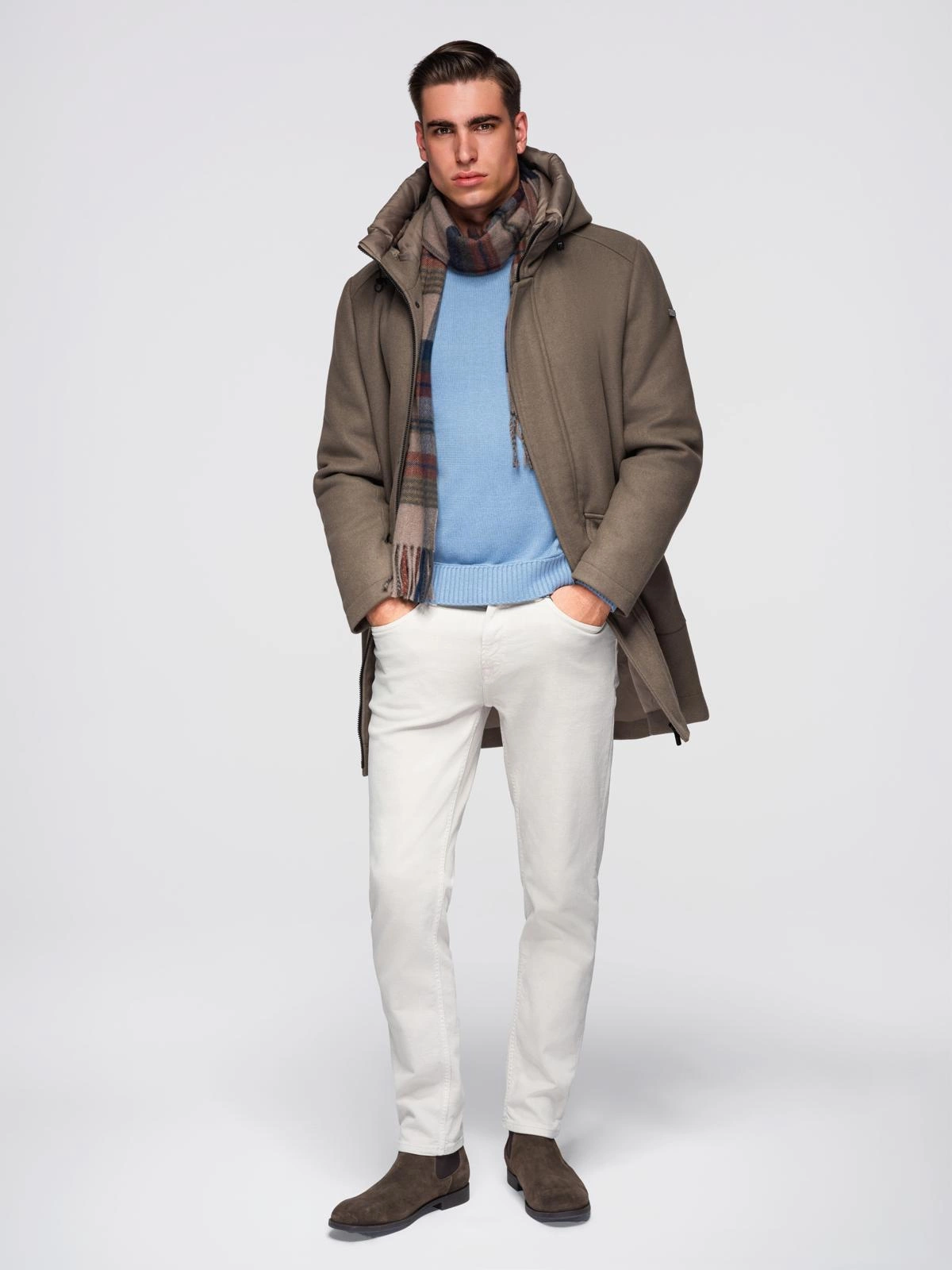 Pánský vlněný kabát parka s kapucí - khaki V2 OM-COWC-0132