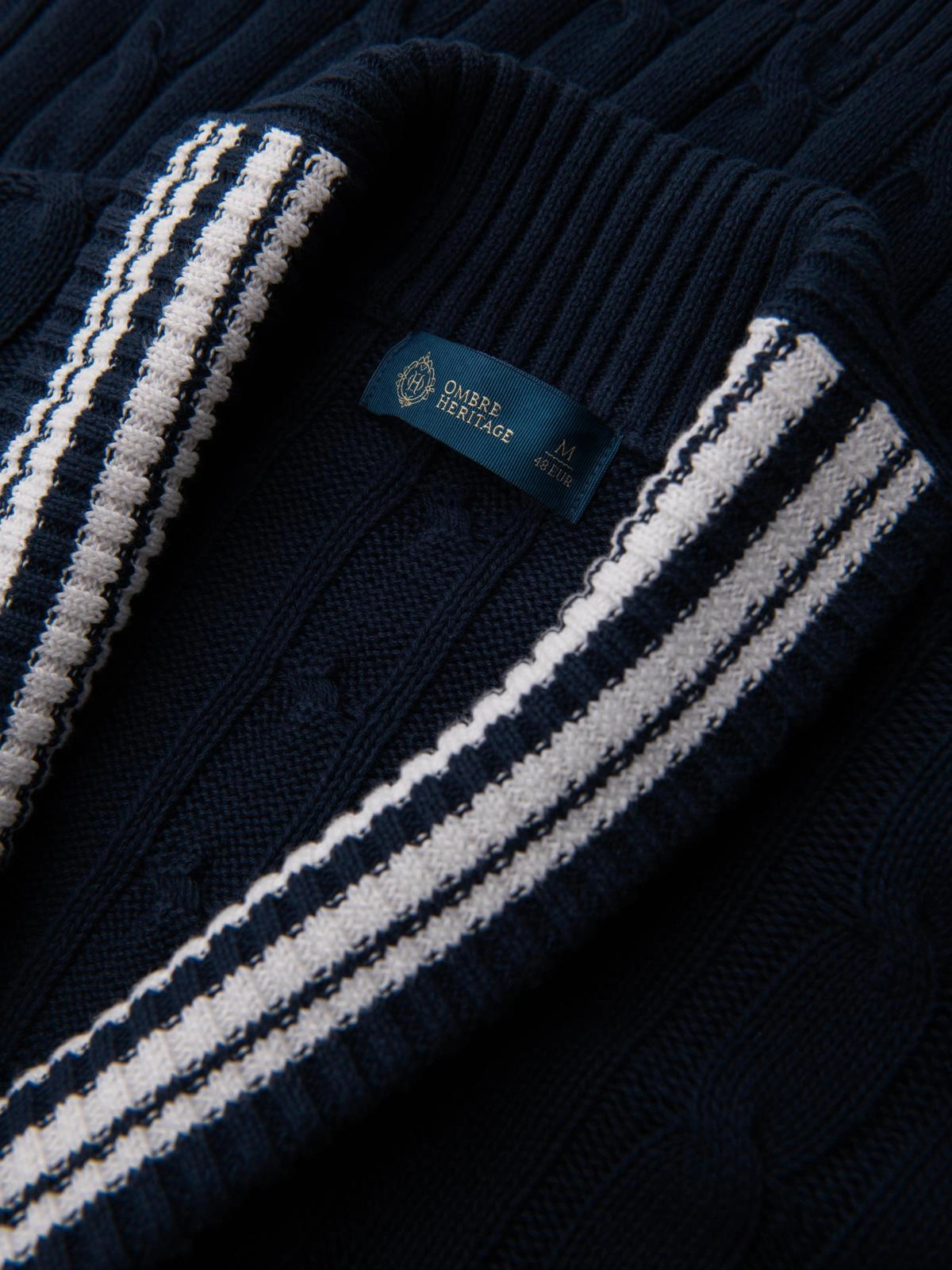 Pánský svetr se šálovým límcem v preppy stylu - tmavě modrý V4 OM-SWCD-0152