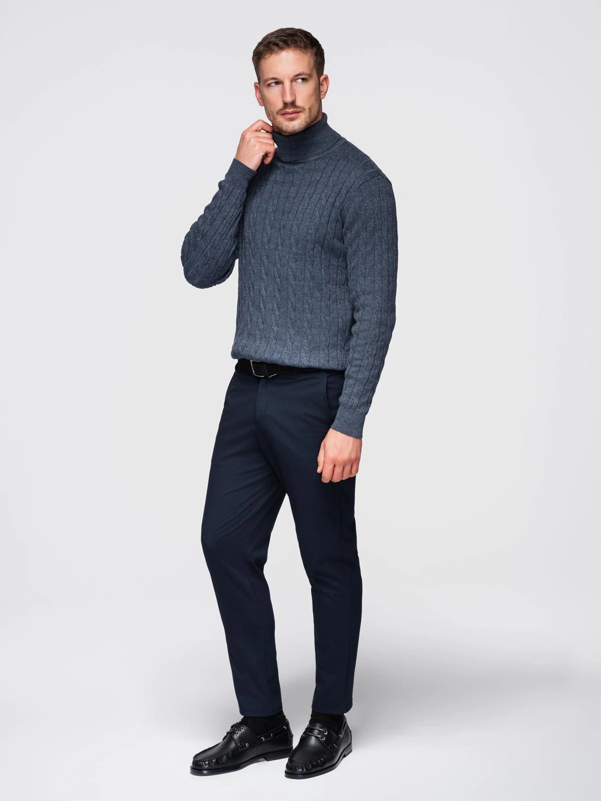 Pánský svetr s rolákem a kostkovanou vazbou - tmavě modrý V3 OM-SWTN-0157