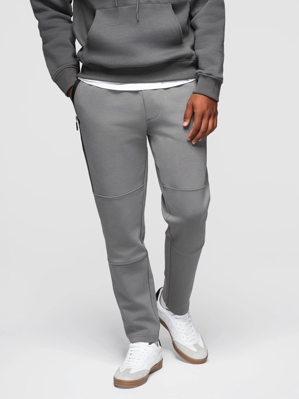 Pánské tepláky s rovnou nohavicí a gumovými detaily - šedé V3 OM-PASK-0281