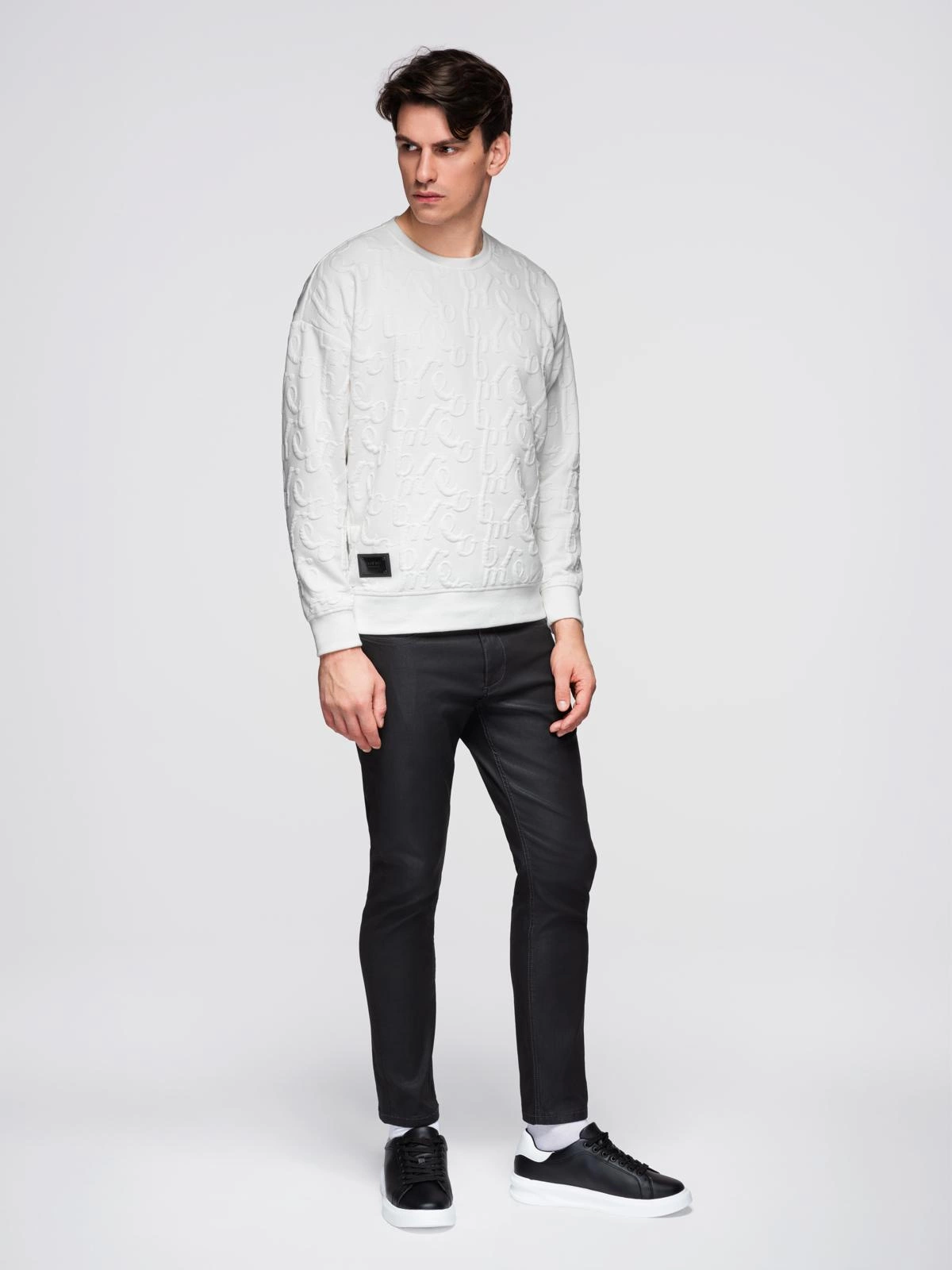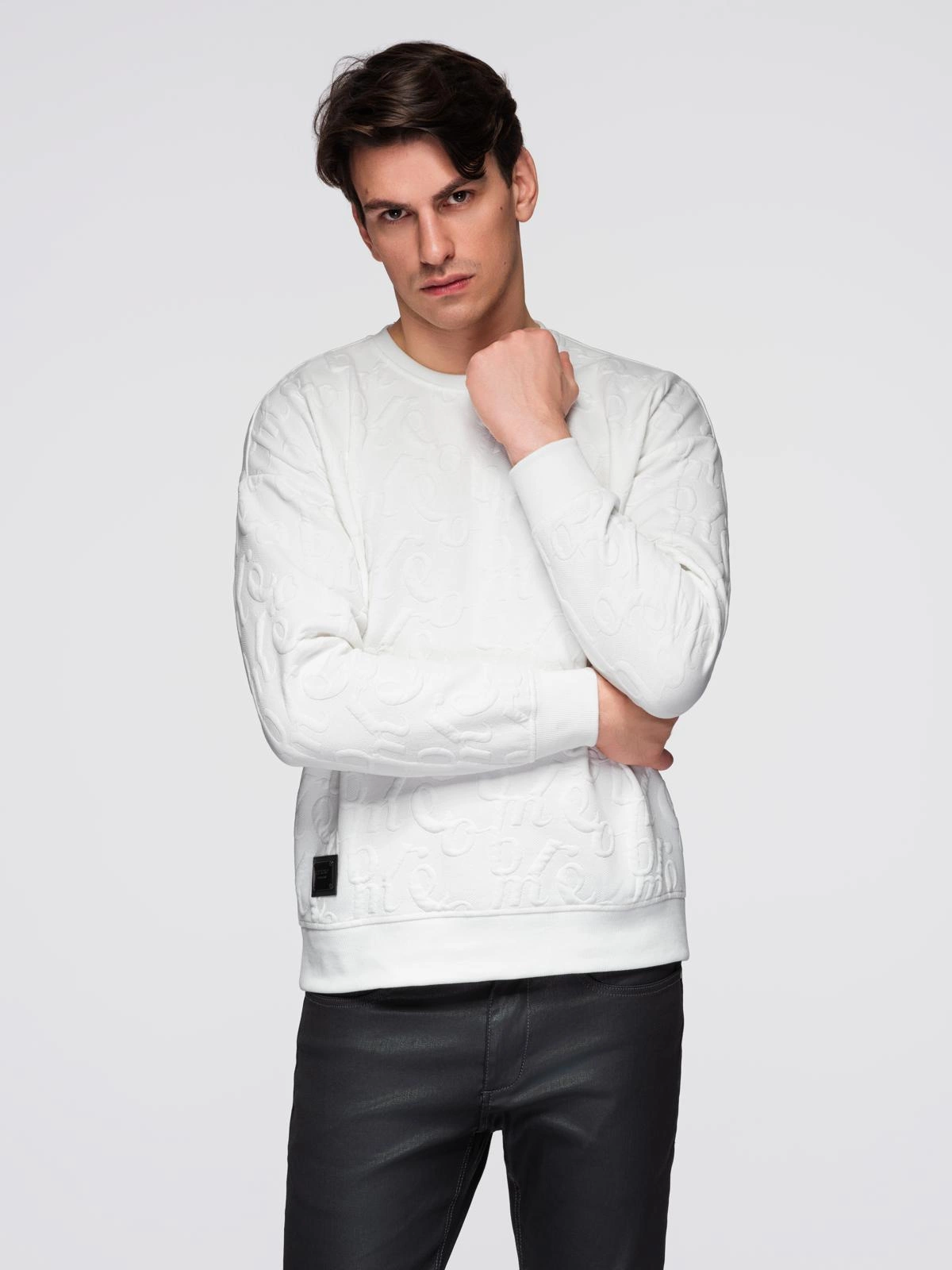 Pánská mikina RELAXED FIT s reliéfními písmeny - ecru V2 B1712